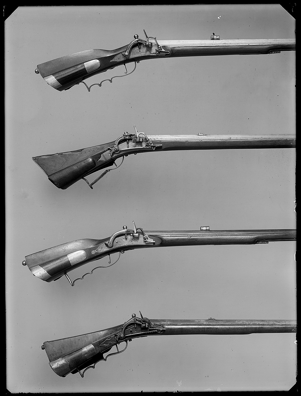 Åttsidig, räfflad pipa, 8 räfflor, bombredd ca 2,2 mm. Stämpel på kammarens övre v. fas: G R S (Stöckelnr 927 eller 928). Vinkelböjt svansskruvblad. Riktmedel: 125 mm lång siktränna, från sidan inlaxade riktmedel, kulissikte av stål och spolformigt korn av mässing. Fästning: Pipan fäst med krysskruv underifrån (främre varbygelskruven) samt två pipstift av trä. Lägglås av Göingetyp, plant låsbleck med enkel repstavsdekor runt hanen. Hane med lös överkäke, rektangulärt tvärsnitt. Käkskruv med litet, cylindriskt huvud. Gemensam slag- och eldstålsfjäder med nedåtriktad båge vid låsbleckets framände, infilad dekor.Rektangulär fängpanna med horisontalt vridbart lock med skivformigt fingergrepp. Batteri med platt fängpannelock, rektangulärt eldstål, vinkelböjd arm. Fästning: Två låsskruvar. Rak avtryckare. Brun, enkel helstock av svensk, Göingeliknande typ med triangulär kolv, häl med spetsig vinkel. Enkel punsad och ristad dekor. Beslag av stål, bakplåt, varbygel med skålad bakre del, enkel, graverad dekor. Bandförstärkning om framstocken vid den slutna laddstocksrännans mynning. Kolvlådelock av stockens trä. Från piprännan in till laddstocksnoten borrat 13 hål. Tillbehör: Flinta nr 18786 i röd klädesmantel. I kolvlådan krats med rund platta i framänden.