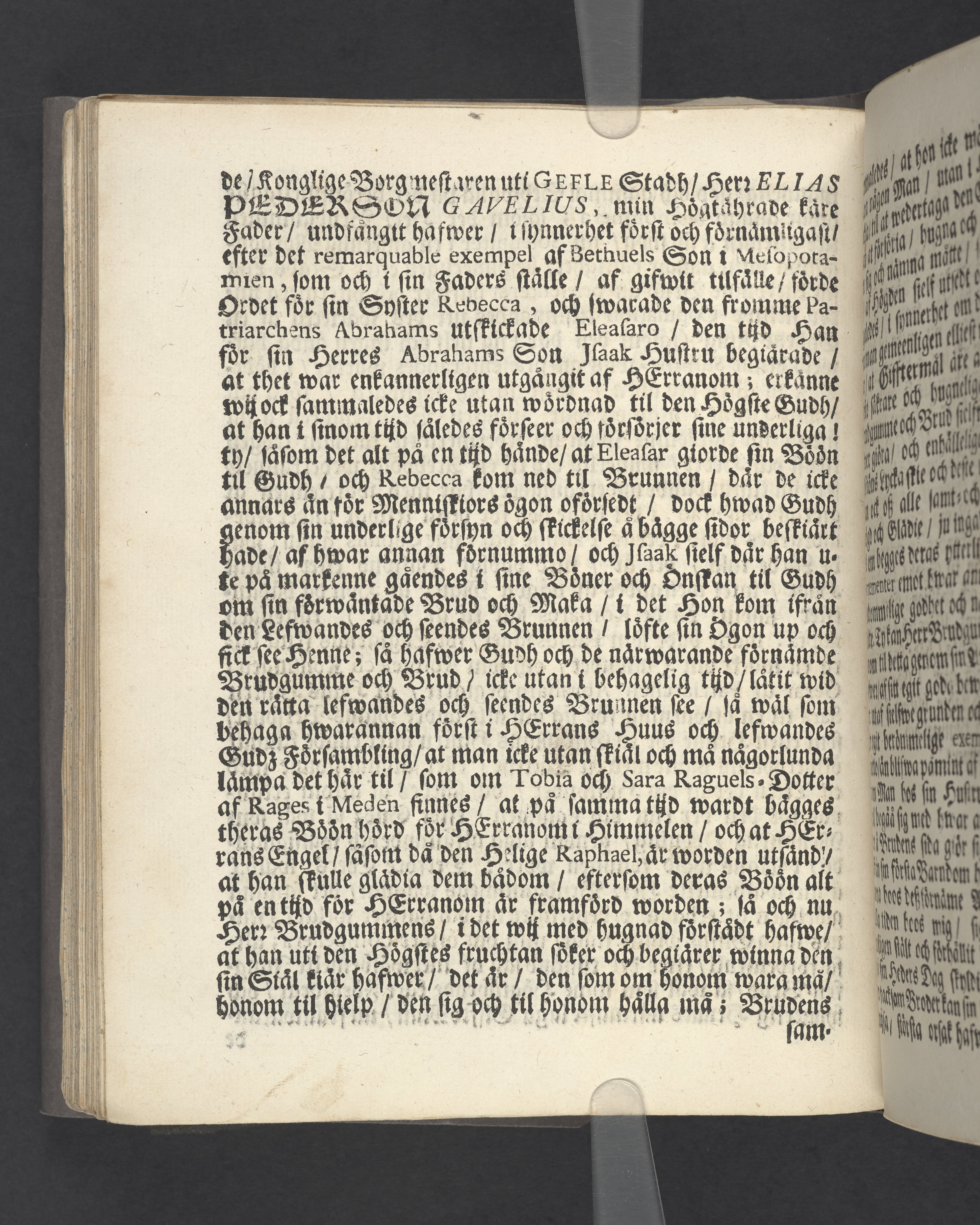 Bröllopps-taal, när secreteraren uti kongl. maj:tz rijks-archivo... Hr. Erich Runell Palmskiöldh medh ... fru Magdalena Palmskiöldh ... sammanvijgdes uppå Brommeregård uti Sånga sockn på Swartsiölandet, åhr 1666 den 3 julii hållit af... Petro Eliæ Gavelio Cederskiöldh...