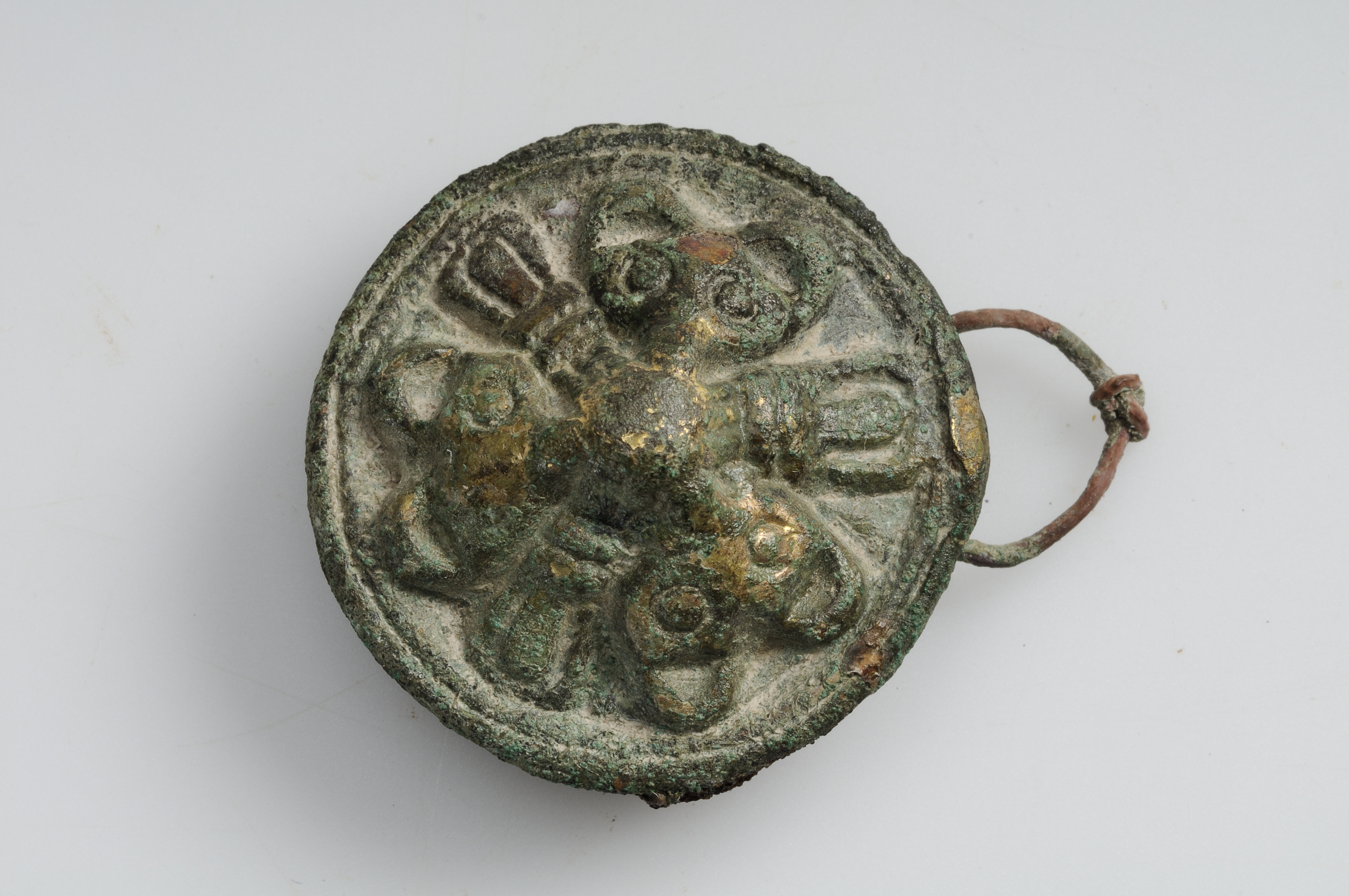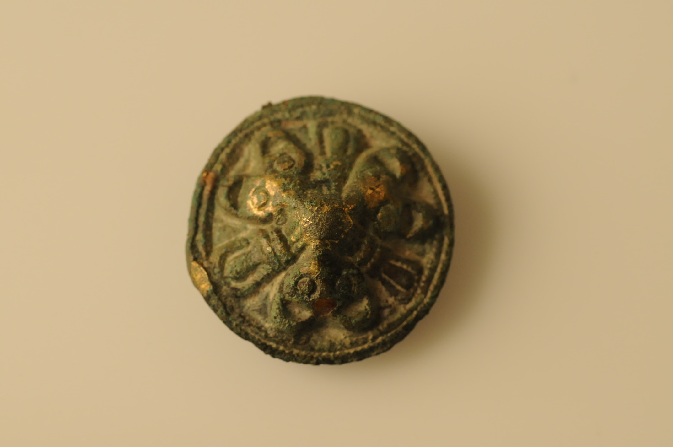 Litet rundspänne i Borre-stil med järnnål och vidsittande textilrester