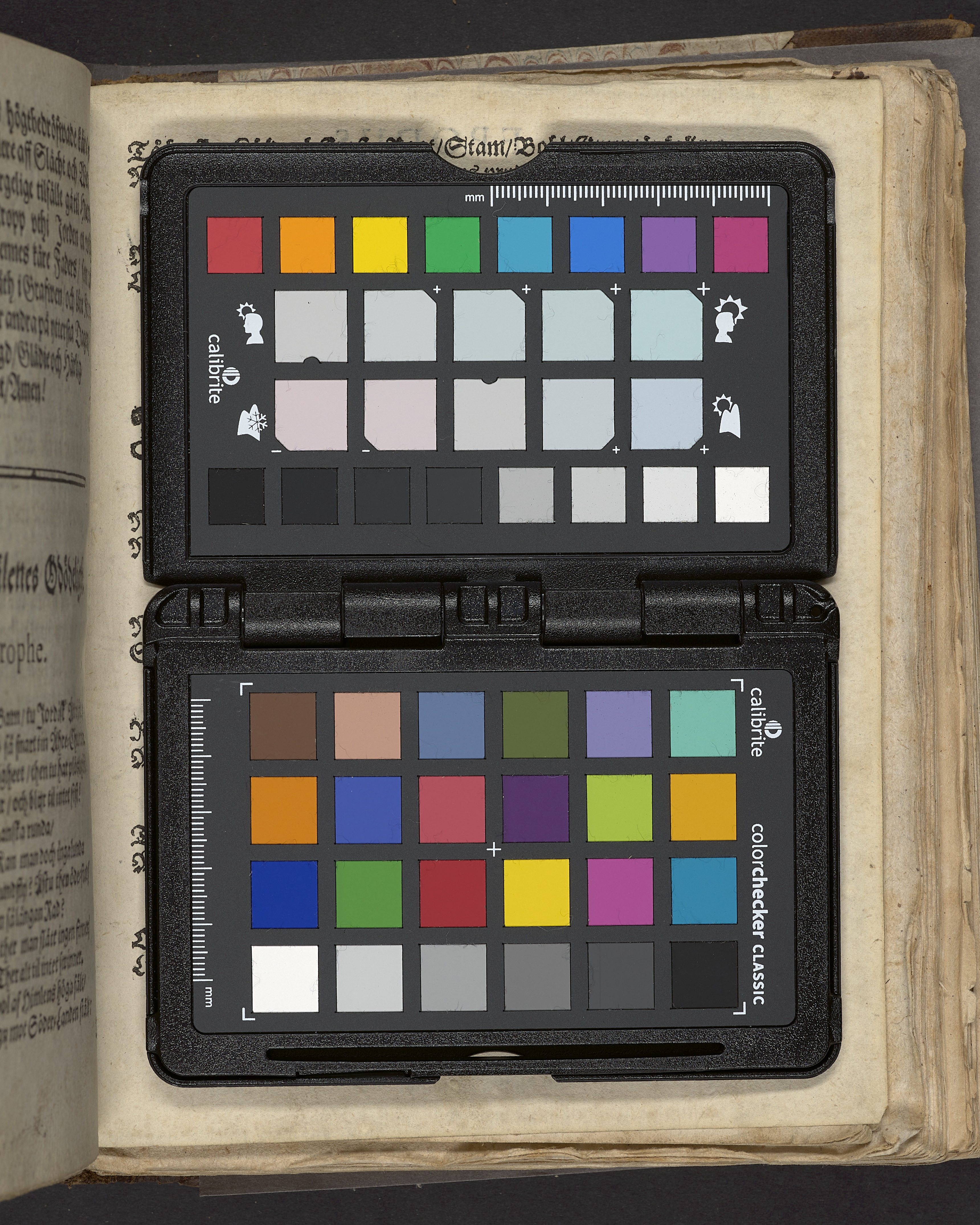 Band m. pärmar av marmorerat papper, rygg och hörn av fårskinn. Pärmfyllnad: papp. Inlagan består av enskilda skrifter som tillsammans häftats på tre bind, fast rygg. Variationer i papperskvalitet och storlek. 18 skrifter samlade i en volym.