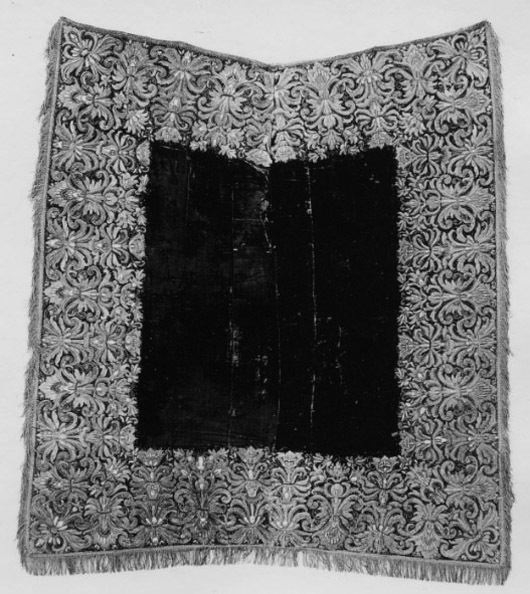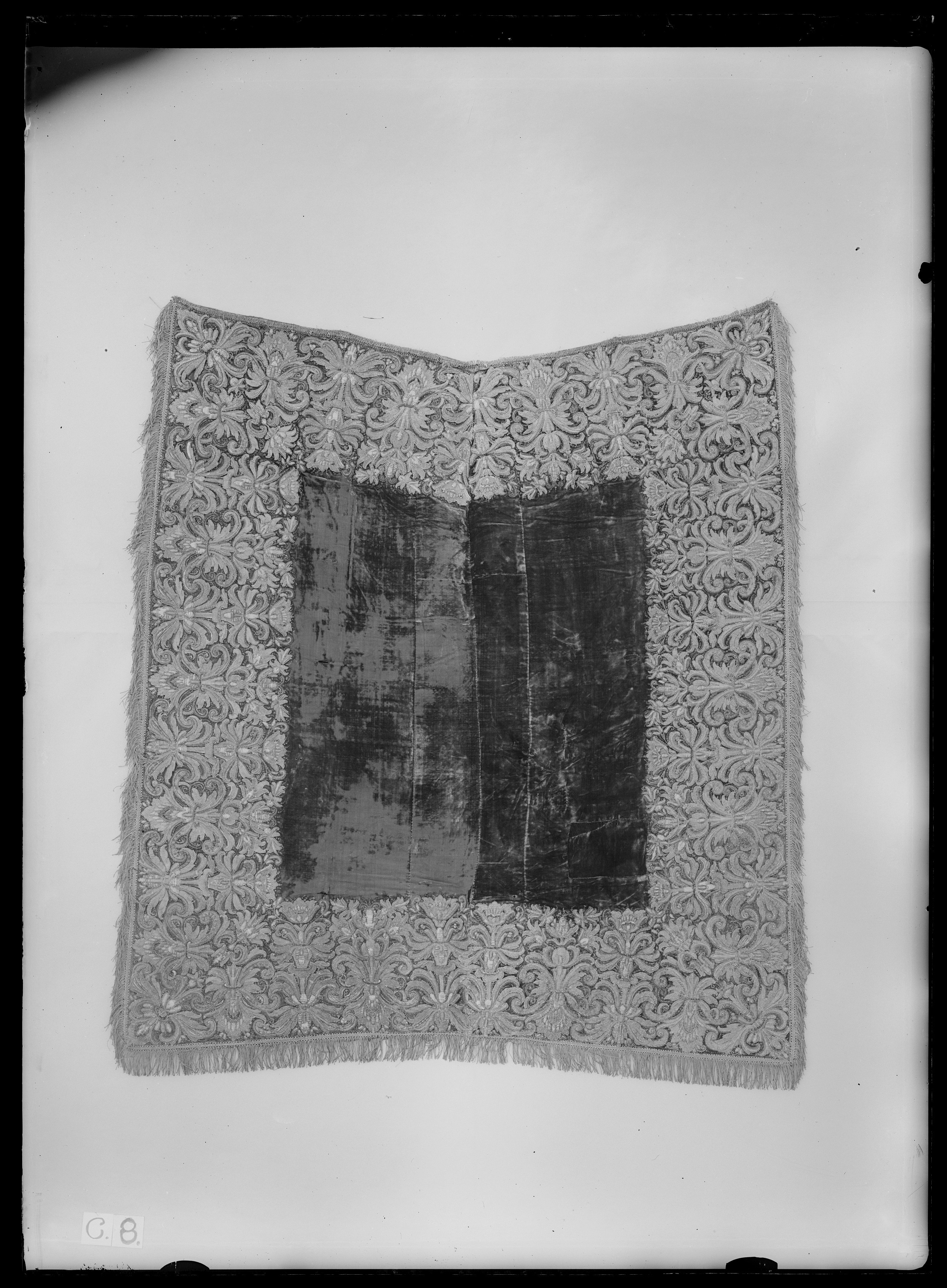 4 broderade stycken af lika sammet och arbete med silfverfransar.