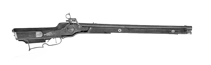 - Pipa: Blank, åtfasidig, något afsmalnande öfver midten. Lopp åttareffladt med breda bommar. Kaliber: 17 mm. Korn af mässing, fast på en i pipan ingradad skifva. Sikte af järn, ingradadt, vid bakre ändan en rakt uppstående skifva, i hvars öfre kant en rundad siktskåra. Svansskrufvens stjärt rektangulär, slät. Korsskruf med stort kullrigt hufvud, gående från undersidan. Lås: Låsbleckets utsida plan, å denna ett bladornament dels framför hjulet vid nedre kanten, dels bakom vid den öfre; vid bakre ändan en mellan två fågelhufvuden uppstigande blomster-stjälk med två större och två mindre blommor. Låsskrufvar två, medkullriga hufvuden. Som skrufbleck tjänstgöra två i stocken infällda runda benskifvor, hvardera med en graverad flerbladig blomma. Hjul utanpå liggande och nedfalldt i låsblecket, tapp fyrsidig, nedtill kring denna en vulst; kring hjulets kant en smal ring, fast med två skrufvar. Hane trubbvinklig, med inuti liggande fjäder; nedre delen fyrsidig, med en djup ränna längs bakkanten, afpassad för låsbleckets öfverkant, då hanen tillbakafälles; öfre delen gröfre, å dennas utsida graveradt nedtill ett ansikte i profil, upptill ett fågelhufvud med hanläpparna som näbb; hanen svängbar på en sprint, rundt denna å låsblecket en graverad rosett, imiterande ett nithufvud. Hanläppar rektangulära, ut- och insidor plana, de yttre släta, de inre taggiga; från öfre läppens bakre ända utgår en rund, bred ögla som handtag, vid bakkanten å denna ett inrulladt utsprång; den öfre läppen nedtill försedd med en i den undre läppen insatt styrskena. Han-läppsskruf med fyrsidig tapp. Flinta saknas. Fängpanna rektangulär, undersida fasetterad, vid bakkanten en rakt uppstående skärm, svagt bakåtböjd (öfre kanten något defekt). Öfver fängpannan ett platt skjutlock, öfver-sida svagt rundad; från bakkanten utgår en kort spets med S-formad öfversida och fasade kanter. Locket rörligt på en från låset utgående arm. Aftryckningsmekanism med två aftryckare, den främre rak, rundstafvig, den bakre svagt bågformad, framsida med fasade kanter, baksida plan; båda gående genom en smal skena, fast vid bakre ändan med en skruf med kullrigt hufvud, den främre fasthållen af den utanpå liggande bygeln. Mellan aftryckarna en ställskruf (för hårdare och lösare aftryckning) af järn, med kullrigt hufvud. Varbygel af järn; främre delen något bågformad, utsida med starkt fasade kanter, insida plan, främre ändan utlöpande i en bladformad spets; i bygelns midt en half-cirkelformad insvängning (fingerstöd); bakre delen nästan rak, ytterända uppsvängd, utsida rundad, insida plan; stödet mot kolfven rakt och utlöpande i en spets som den vid främre ändan. Bygeln vid hvardera ändan fast med en skruf. Stock: Af valnötsträ, med graverade inläggningar af ben. Å kolfven vid anhållets nedre kant en åt höger ridande man med hjälm, hållande en pistol i den framsträckta vänstra handen, från ryggen en rakt utåt fladdrande mantel-flik; längs anhållets nedre kant en hel benskifva, hvarå graveradt en blomranka; å hvardera af stockens sidor två benskifvor, liknande de nyssnämnda skrufblecken för låset, något mindre och tjänstgörande som bleck åt pipfastena. Längs kanterna å stock och kolf en smal åder af ben. Kolf (s. k. tysk) nästan rak, oregelbundet femsidig, öfversida smal, undersida rundad. Anhåll utstående snedt nedåt med rak nederkant, vid hvardera ändan en insvängning, den bakre båg- och den främre S-formad. Å kolfvens motsatta sida en kolfiåda af 0.03a m:s djup, täckt af ett skjutlock med spärrfjäder af järn. Lockets öfversida rundad, å denna vid hvardera ändan en benskifva, hvarå graveradt: å den bakre en springande hind och en trädstam, å den främre en man i bröstbild med långt, nedfallande, lockigt hår; längs hvardera kanten en smal åder. Stötbleck af en tunn benskifva, hvarå graveradt en musketör i 1600-talsdräkt, bärande musköten på vänstra axeln och en stor fågel i högra handen, svärd vid vänstra sidan, bakom musketören en trädstam. Upptill å stötblecket en svagt sexsidig knopp af järn. Stocken vid mynningen skodd med en skifva af ben, å denna på ömse sidor om rännan för laddstaken graveradt ett S-formadt bladornament. För laddstaken löper på undersidan en 0.420 m. lång ränna, hvilken rörformigt fortsätter vidare bakåt in i stocken; i rännans öfre ända dessutom en slät hälla (ej original) af mässing. Laddstake af ask, längd 0.640 m., diameter 0.012 m., nedre ändan med en cylindrisk skoning af ben, å denna vid ömse ändar en graverad bård med inåtvända uddar, innanför skoningen sex smala ringar af ben, hvarannan i hvitt, hvarannan i svart, öfre spetsen med en 0.128 m. lång hylsa af järn, i hvars nedre ända ett gängadt hål. Inuti låseit graveradt låssmedens (ägarens?) namn: Vikt: 3.300 kg. Längd: o.gio m. Pipa, längd: 0.640 m. Tyskt arbete från 1600-talets midt; låssmed (?) Tobias Schmid (Schmidt?). Anm. I stocken bakom svansskrufvens stjärt en urspräckt flik. Gåfva till Walther von Hallwyl Julaftonen 1898 från hans svärmor Johanna Kempe, f. Wallis 13 September 1818, d. 15 April 190g. Inköpt af den sistnämnda å auktion hos konsthandlaren H. BUKOWSKI, Arsenalsgatan 2 D, Stockholm, 15 och 16 April 1898. Katalog 114 n:r 177, se räkning 18 April 1898, utställd på WILHELMINA VON Hallwyl, f. Kempe. Betald 20 April 1898, se Rescontra (Johanna Kempe) och räkning. Pris: Kr. 155, se räkning. Kända tidigare ägare, se Auktionskatalog 114: 1. Öfverste-löjtnanten Nils Harald Joachim Åkerstein, Stockholm, f. 1 Mars 1793 i Stockholm, d. 24 Oktober 1853 i Bonn, Tyskland. 2. Vapensamlingen på Vik, Balingsta socken, Uppland, bildad af öfverhofstallmästaren grefve Gustaf Adolph Fredrik Wilhelm von Essen, f. 15 Juli 1803, d. 3 Oktober 1874, gift 7 April 1831 med Ida Mary von Rehausen, f. 13 Mars 1811, d. 2 Ma
