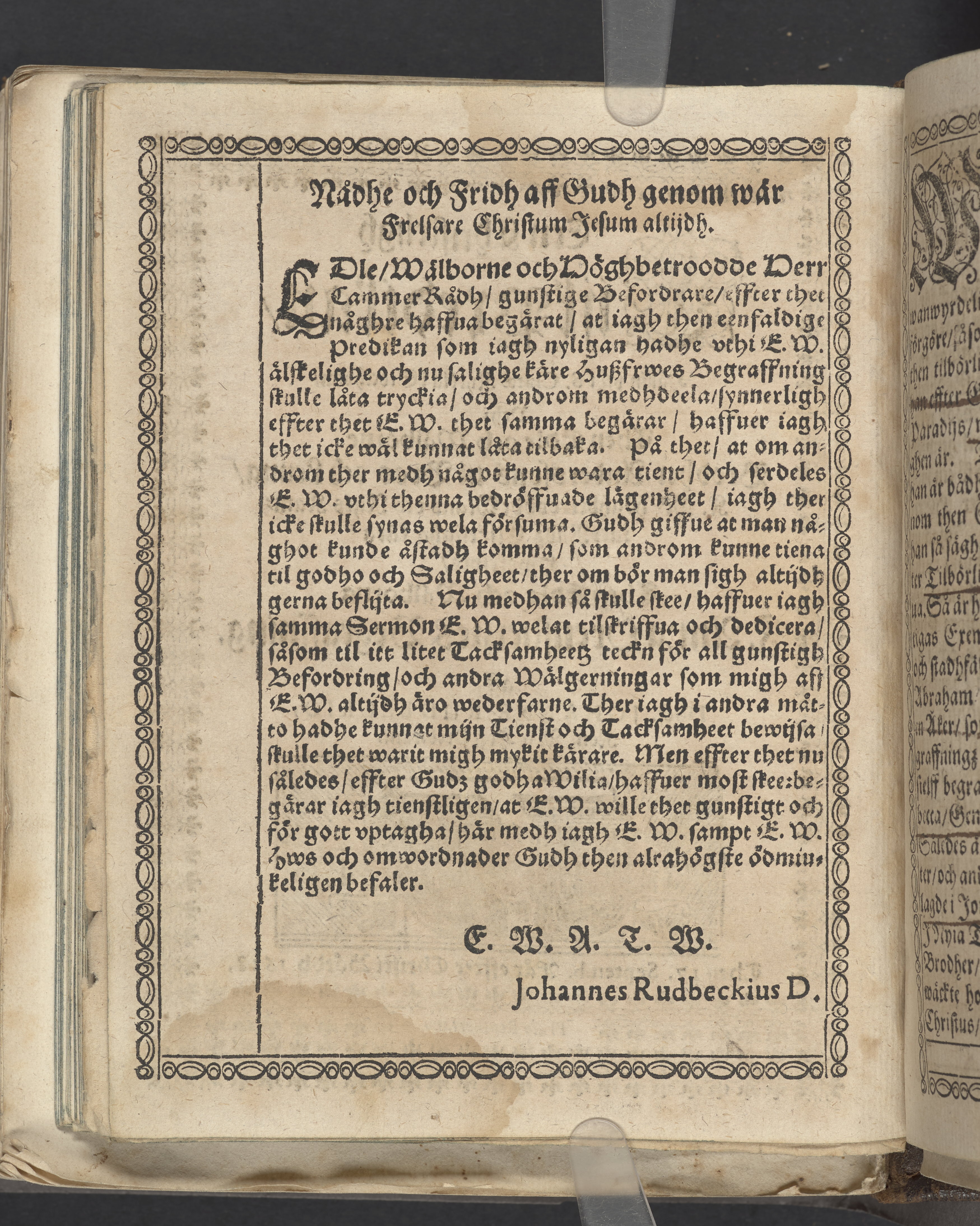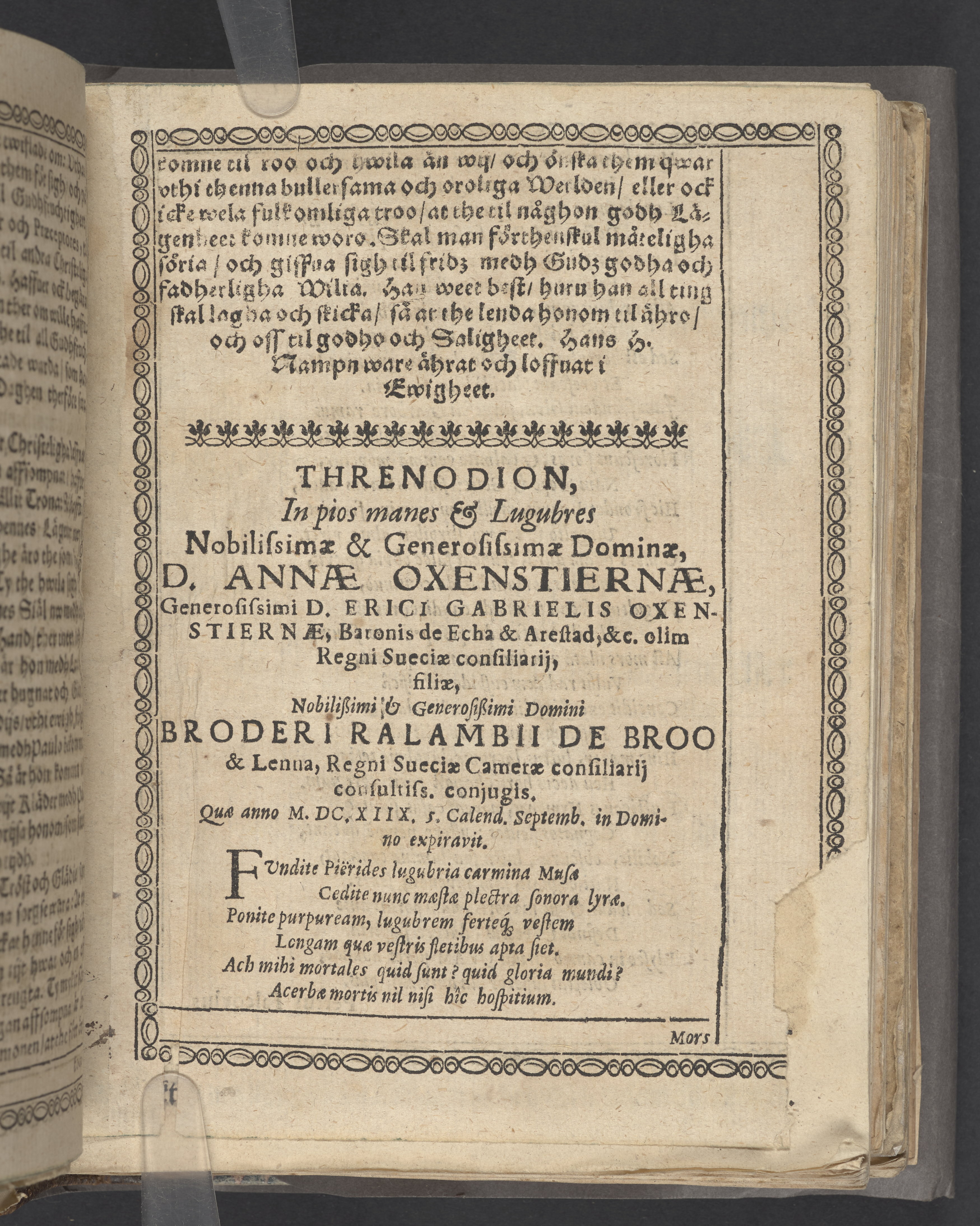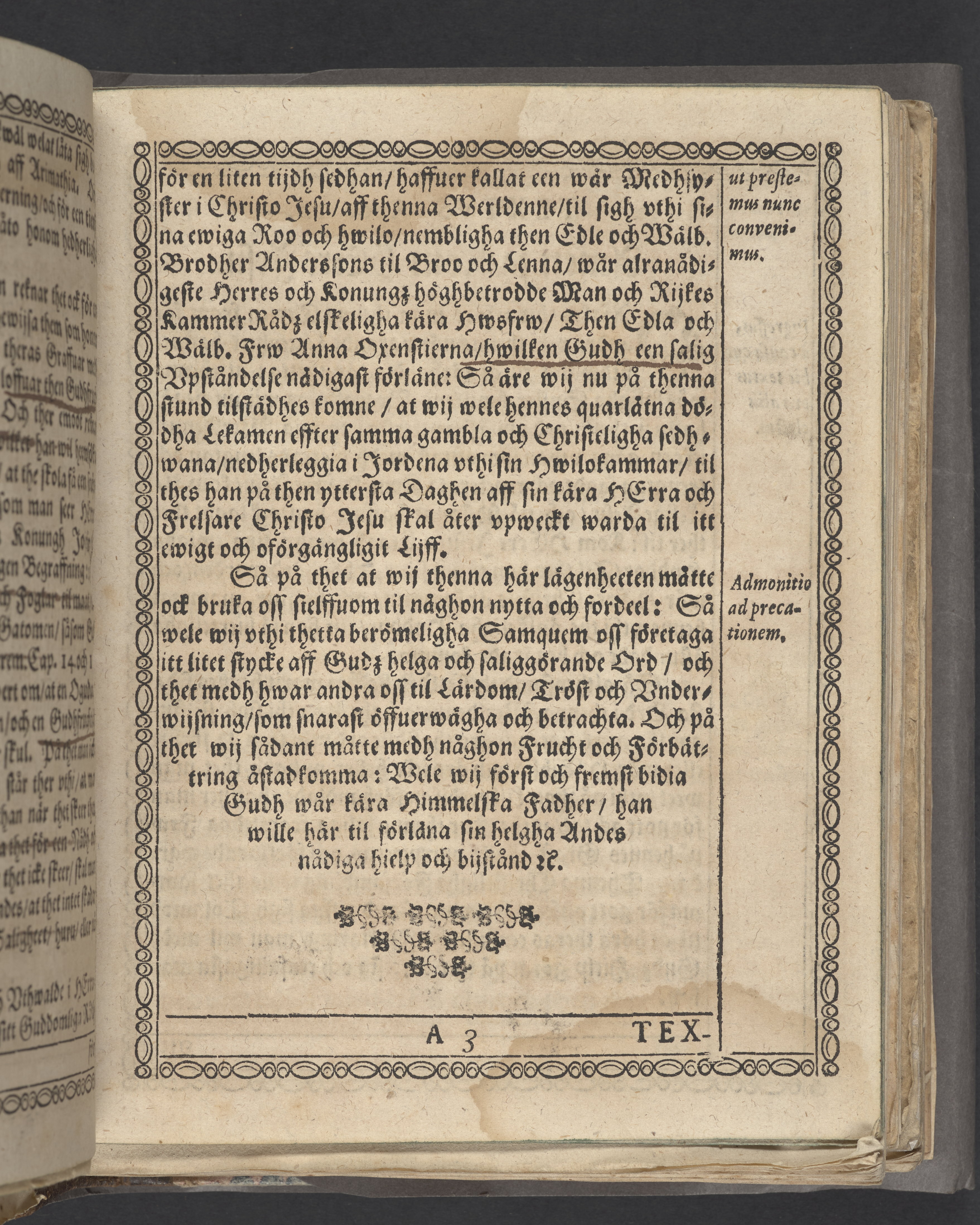En christeligh lijkpredikan, hållin vthi S. Claræ kyrkia i Stockholm, vthi then edle och wälborne Brodher Anderssons til Broo och Lenna ... hwsfrwes then edla och wälborna F. Anna Oxenstiernes begraffning aff doct. Johanne Rudbeckio ... Then 17 septemb. åår effter Christi bördh 1618. Prælo Reusneriano.