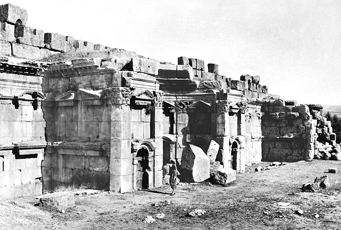 Fotografi. Vy över "Chambres Carrées" i Baalbek.