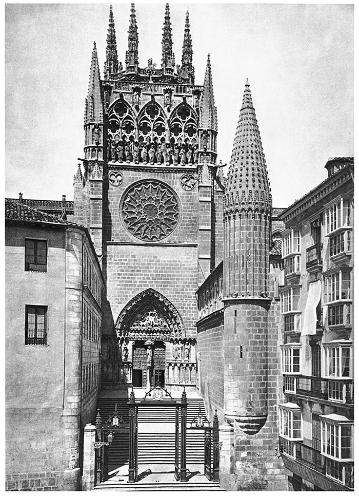 Sarmentalporten, katedralen i Burgos. Foto från resa genom Spanien, Portugal och Marocko, 18 mars-5 juni 1895. Fotografierna LXVI:J.01.-169. är inköpta av Wilhelmina von Hallwyl, f. Kempe i Barcelona, Tarragona, Valencia, Córdoba, Sevilla, Granada, Málaga, Tanger, Ronda, Madrid, Toledo, Lissabon, Salamanca och Burgos. Med på resan var maken Walther von Hallwyl, modern Johanna Kempe, f. Wallis samt fröken Ida Uhse. Uppgifterna kommer från fröken Ida Uhses reseanteckningar.