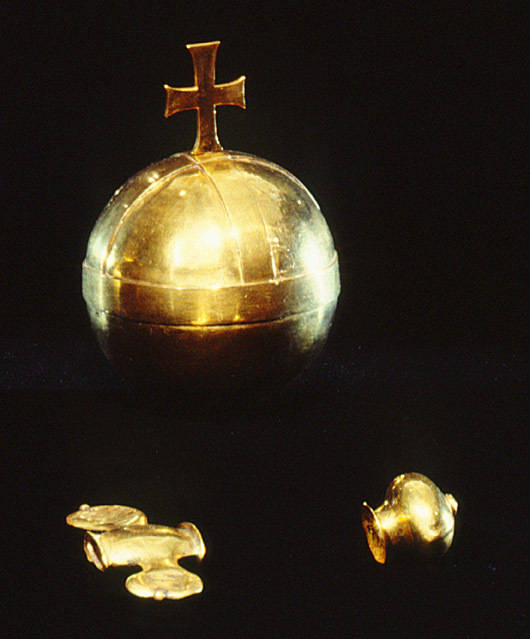 Parerstänger av guld från värja, tillhörande Karl X Gustavs begravningsregalier.