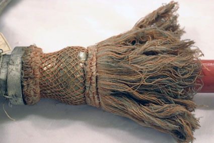 Tornerbardisan bestående av blad, holk, knopp och skaft. Större blad av förtent/försilvrat bleckplåt i två delar. Den nedre delen har tre spetsar åt vardera håll varav de nedre är nedåtgående och de övre är uppåtgående. Övre delen består av en bardisanliknande, uppåtriktad spets med upphöjd mittås. Oval holk av bleckplåt med vidhängande etikett med text: "Gripsholm 1945 // nr VIII: 3 // Drottningholm 1799". Under holken finns en balusterformig knopp av trä klädd med guldfärgad lan, som i sin tur är klädd med ett orangefärgat nät av ylle. Nedtill finns en frans av orange, grå och vit ylle. Rödmålat skaft av trä. Rundstav. Diameter: 50 mm.