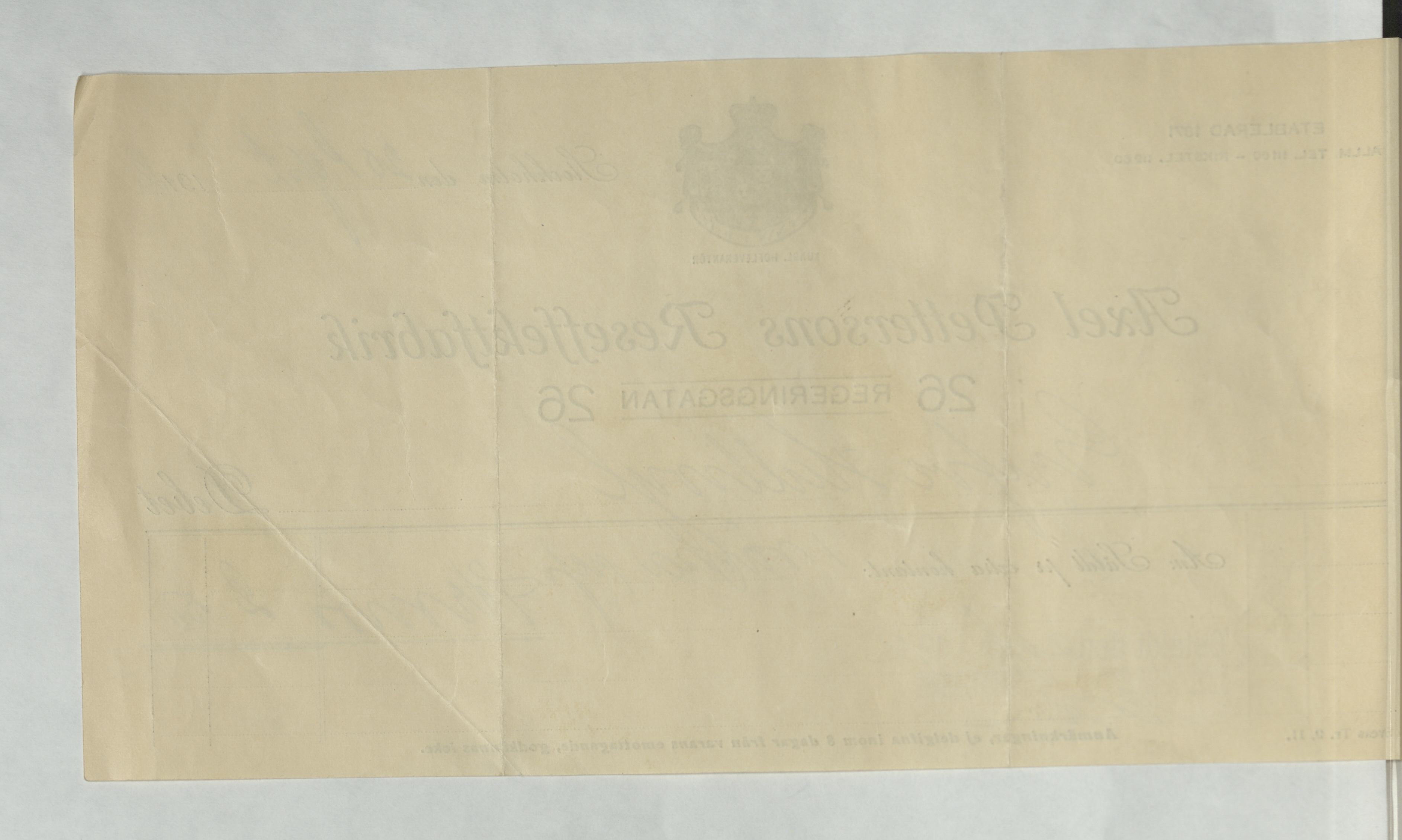 Kvitto från Axel Petterssons Reseffektfabrik, 1912
