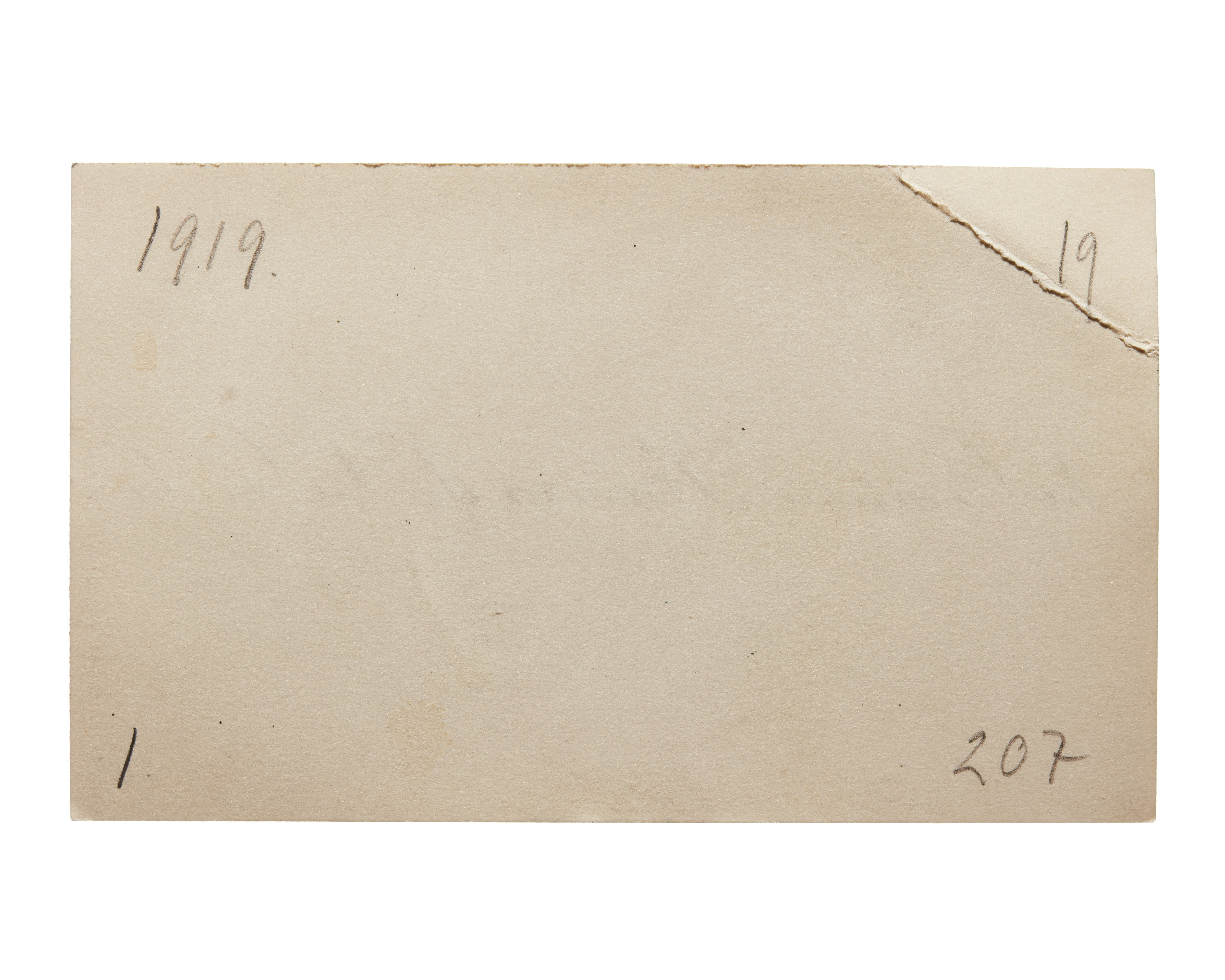 Ett visitkort från La Comtesse Brevern de la Gardie, daterat 1919, vikt i övre vänstra hörnet.