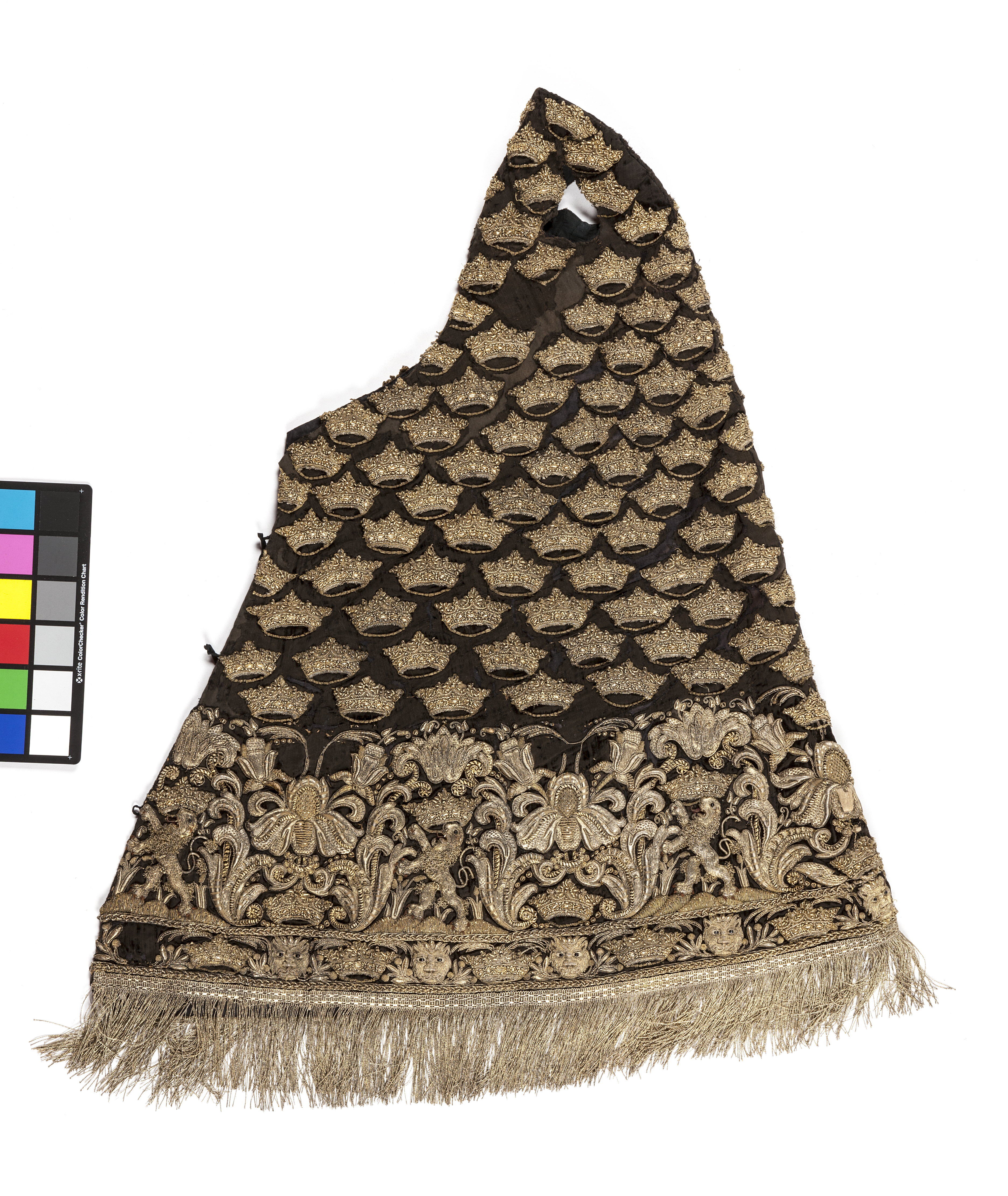 Halskappa, hör till Kyritzryttarens utrustning, vilken ingick i Karl X Gustavs begravningståg den 4 november 1660.