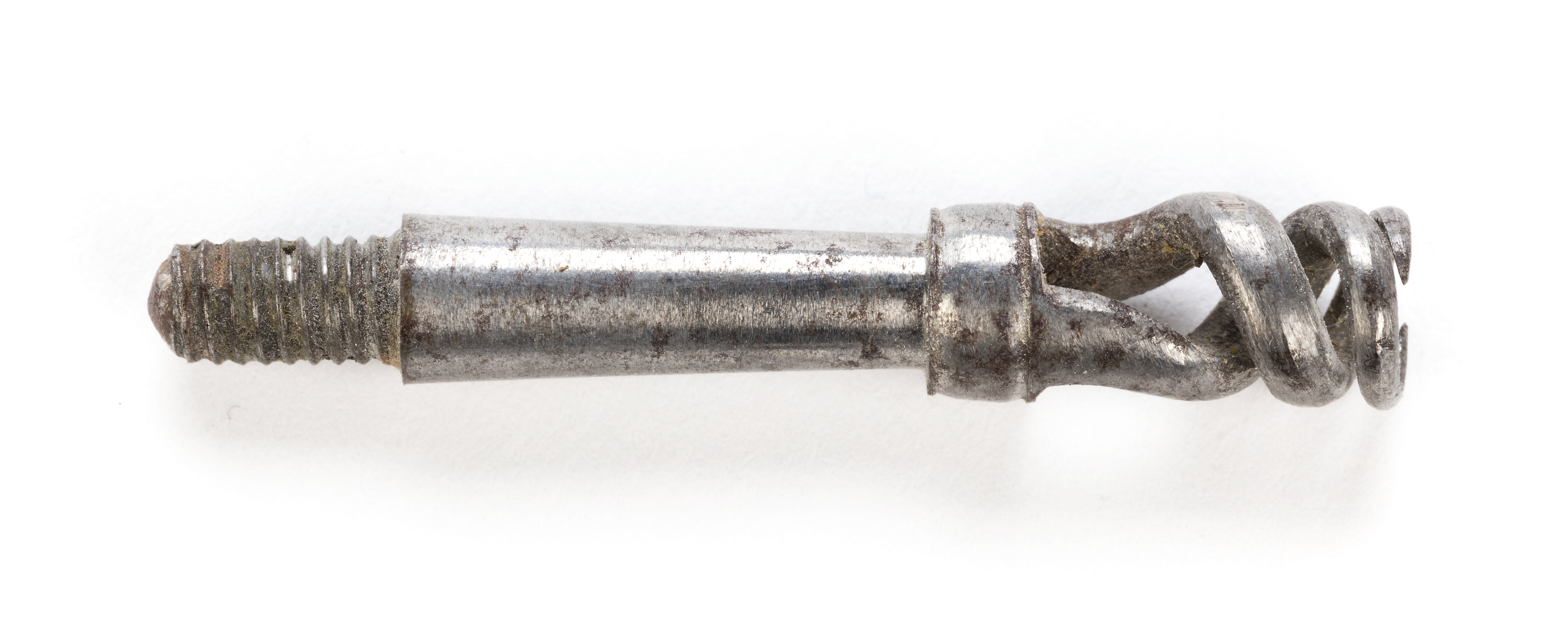 Krats av stål med gängad nederdel, därframför ett svagt koniskt parti samt en platta med två i flera varv om varandra vridna ståltenar.