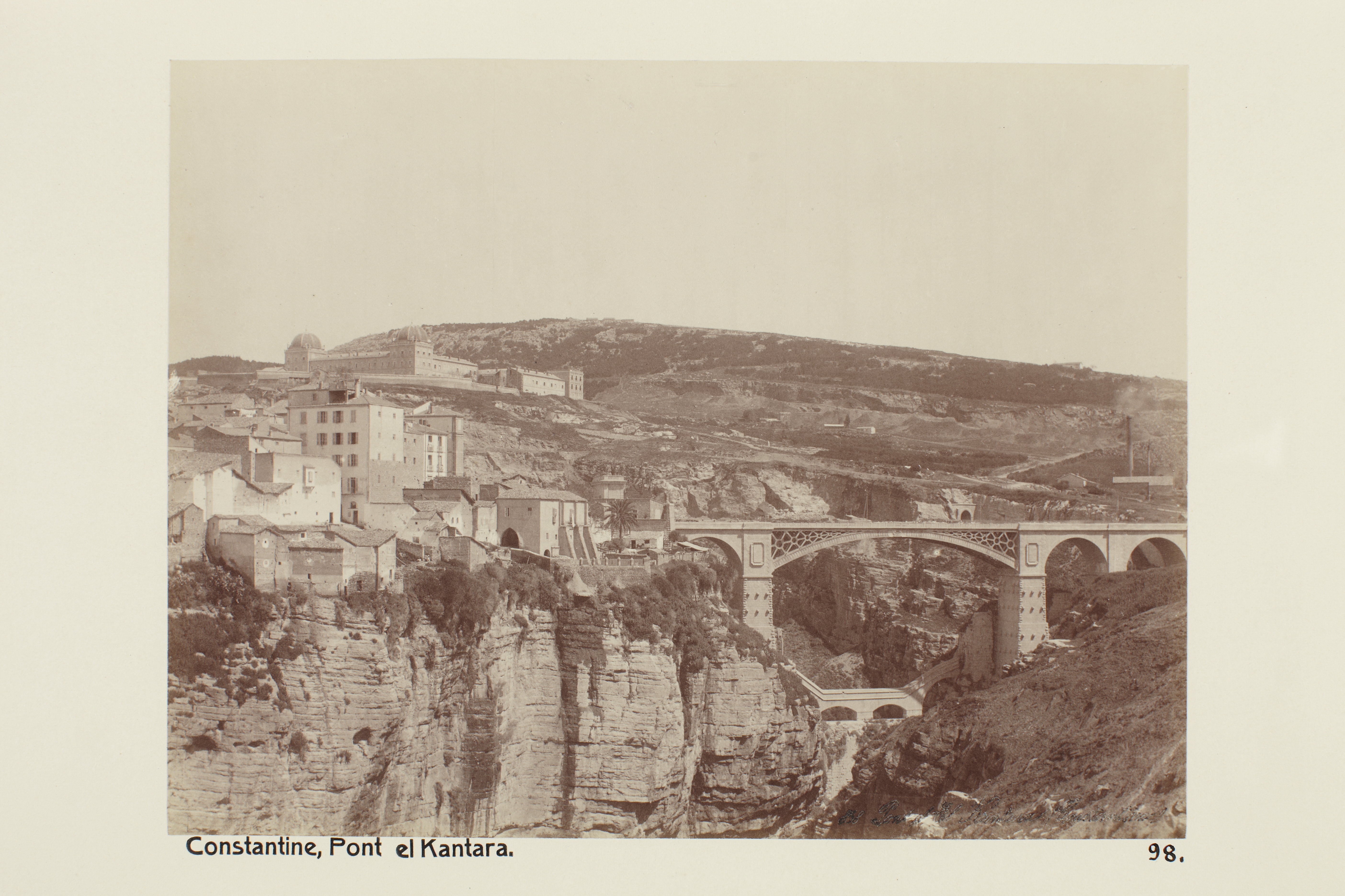 CONSTANTINE, Algeriet. El Kantara-bron. Foto från resa genom Algeriet och Tunisien samt åter över Schweiz, 11 februari - 19 maj 1889. Samtliga foton i gruppen LXVI:F. är inköpta av Wilhelmina von Hallwyl i Alger, Biskra, Tunis, Constantine, Oran och Blidah vid hennes vistelse i nämnda städer tillsammans med sin make, Walther von Hallwyl, sin mor, Johanna Kempe, f. Wallis, dottern Irma samt fröknarna Caroline Pflaum och Ida Uhse. Uppgifterna kommer från fröken Ida Uhses reseanteckningar.
