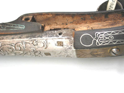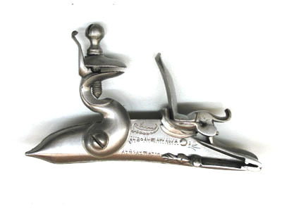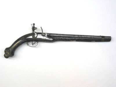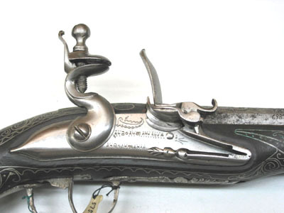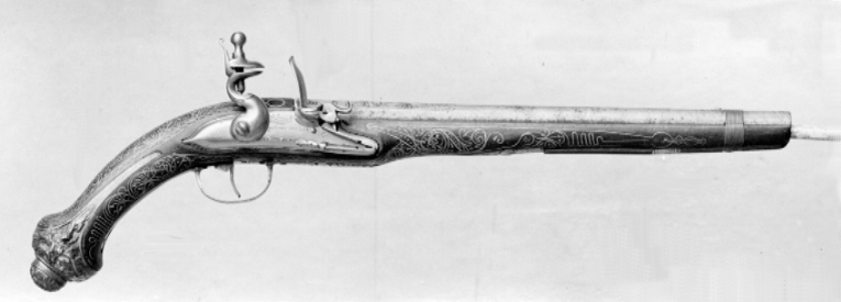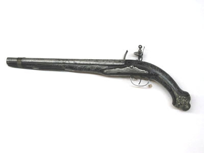 Orientalisk flintlåspistol, pipan möjligen av Johan Engwall (??), Jönköping, 1700-talets mitt