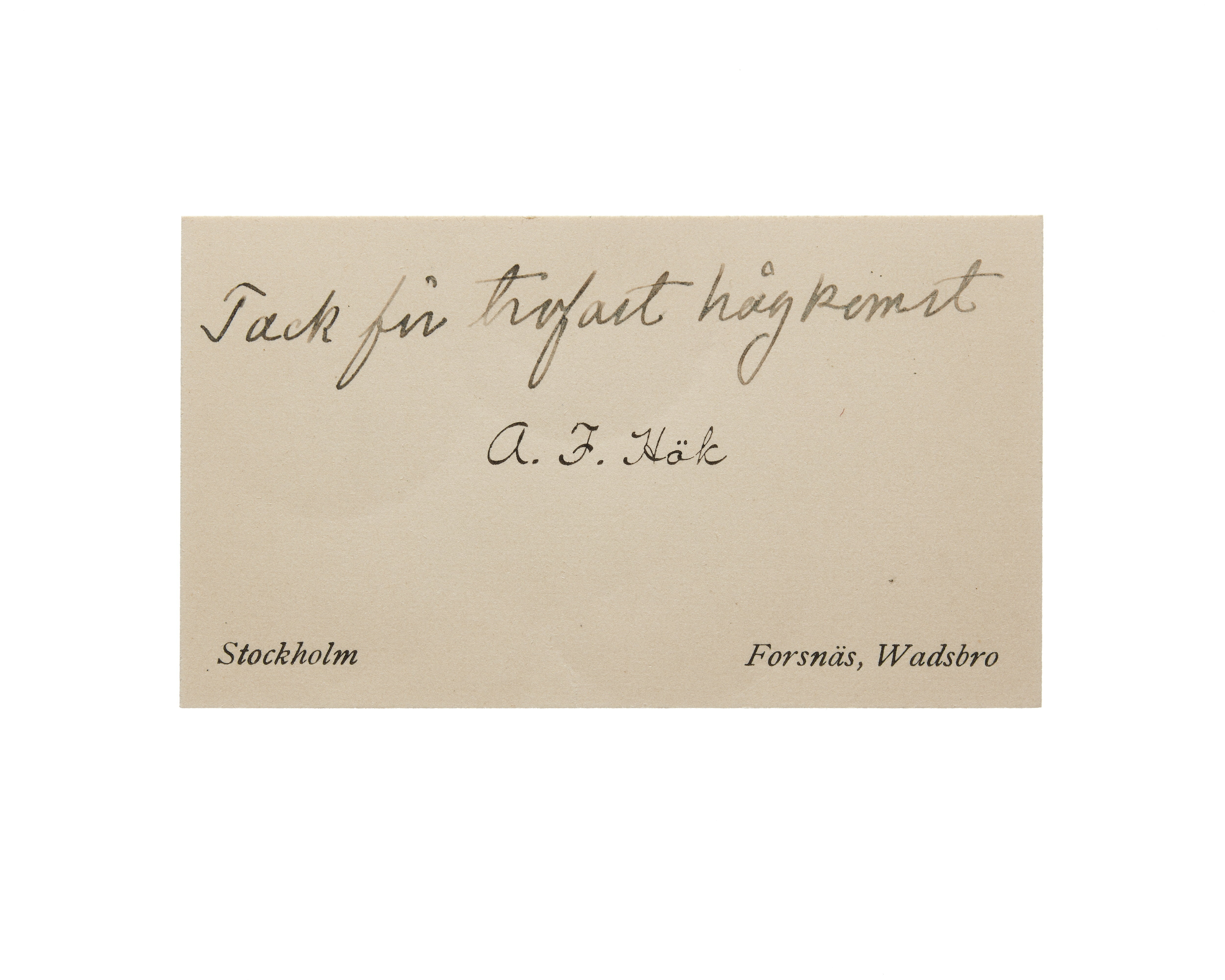 Visitkort från A. F. Hök.
