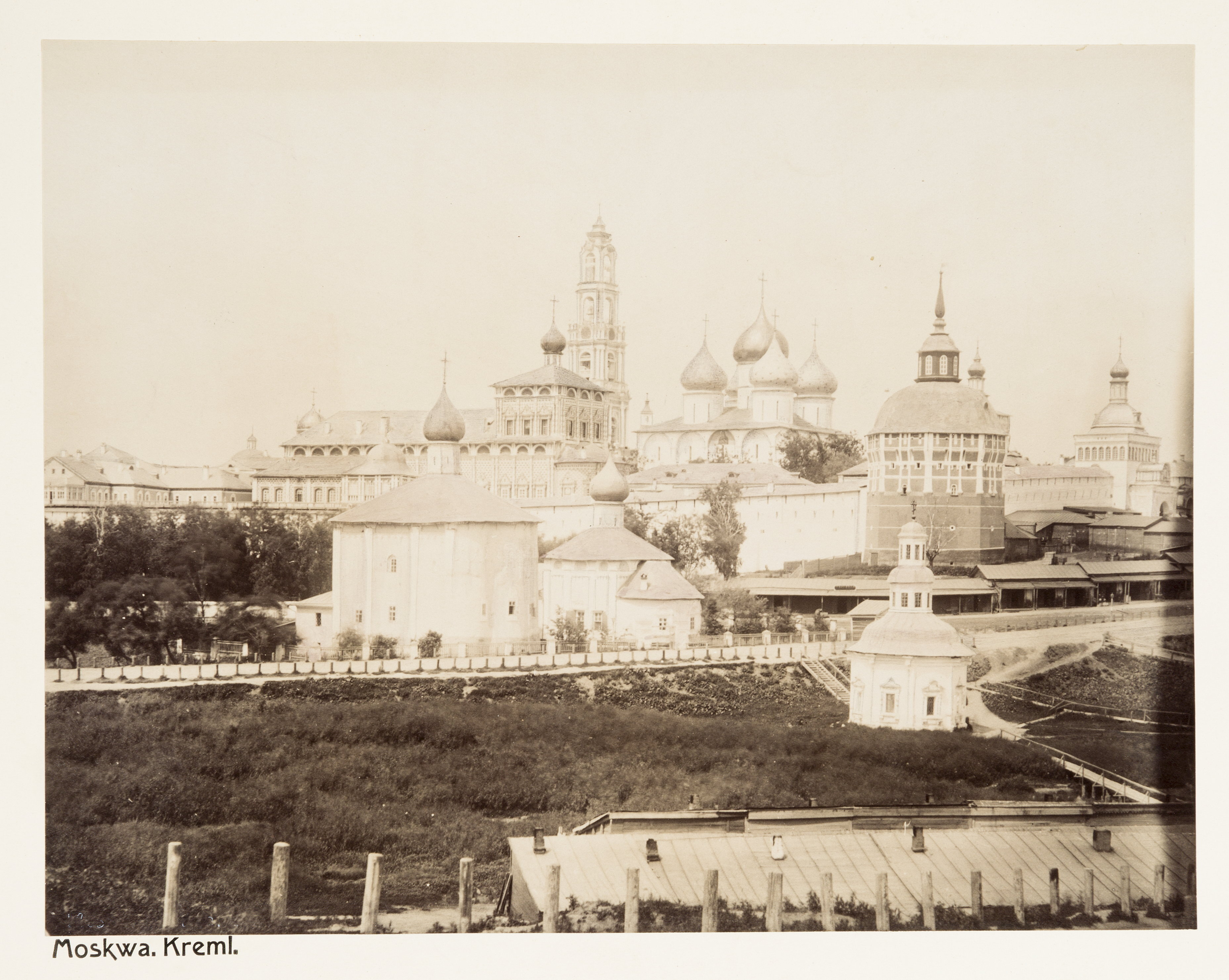 Kreml i Moskva. Foto från en resa genom Polen, Ryssland och Finland, 23 maj-25 juni 1898. Fotografierna LXVI:L.01.-04. är inköpta av Wilhelmina von Hallwyl, f. Kempe, i Moskva. Med på resan var maken Walther von Hallwyl, modern Johanna Kempe, f. Wallis samt fröken Ida Uhse. Uppgifterna kommer från Ida Uhses reseanteckningar.