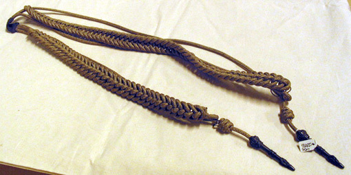 Ägiljett av gespinstarbete med ändbeslag av mässing. Modellenlig.