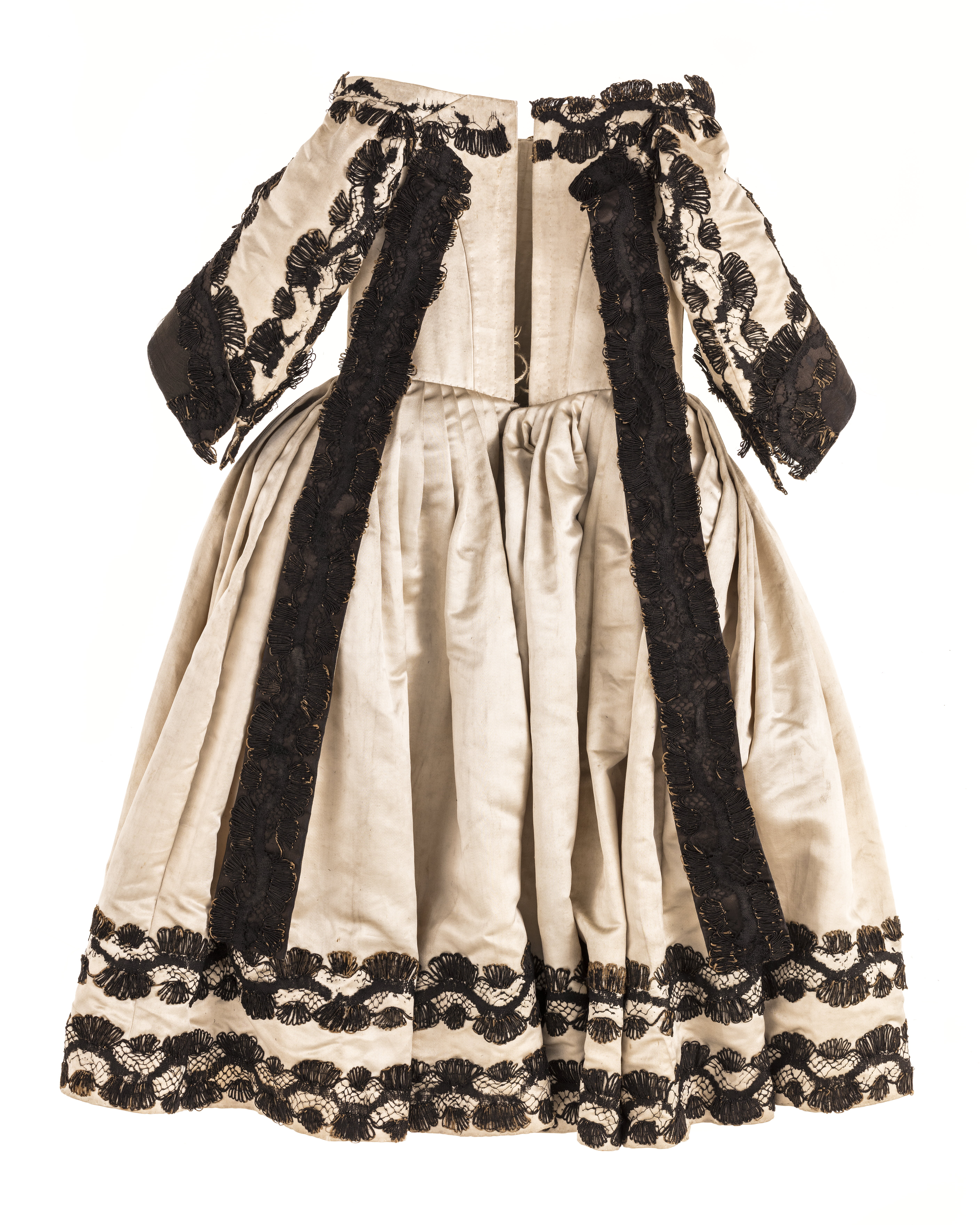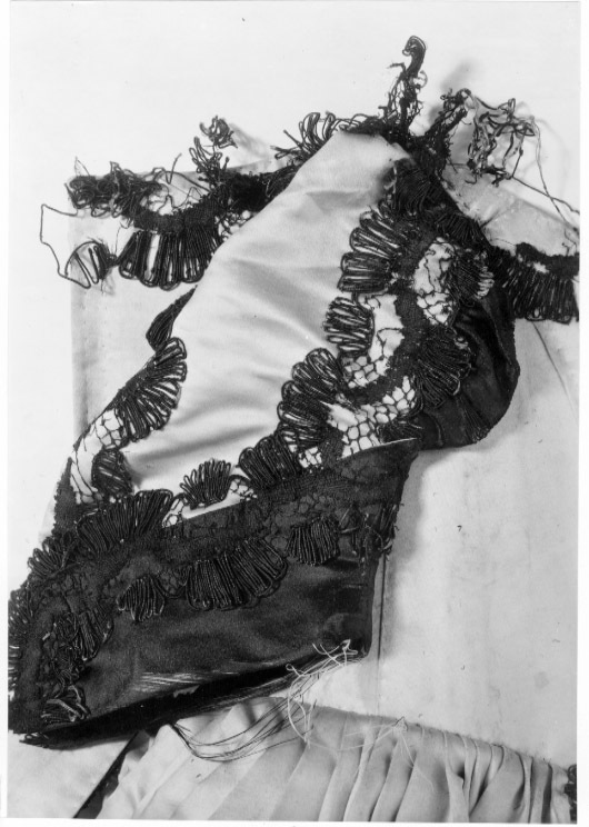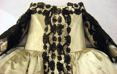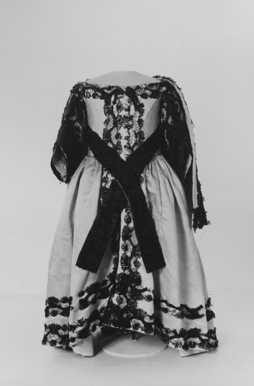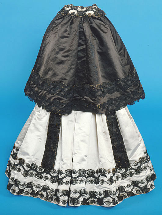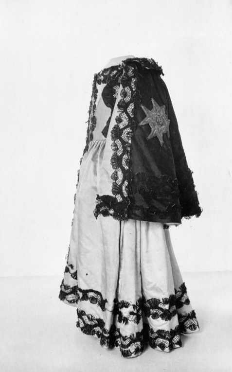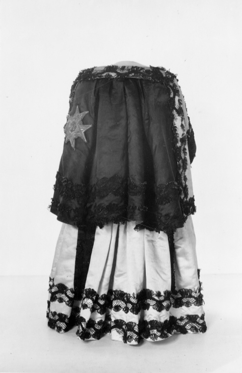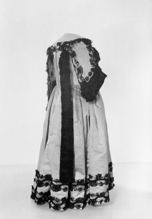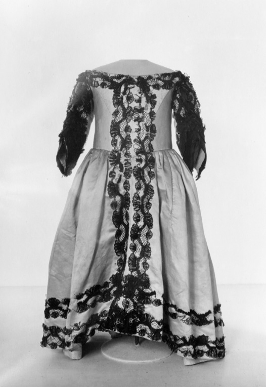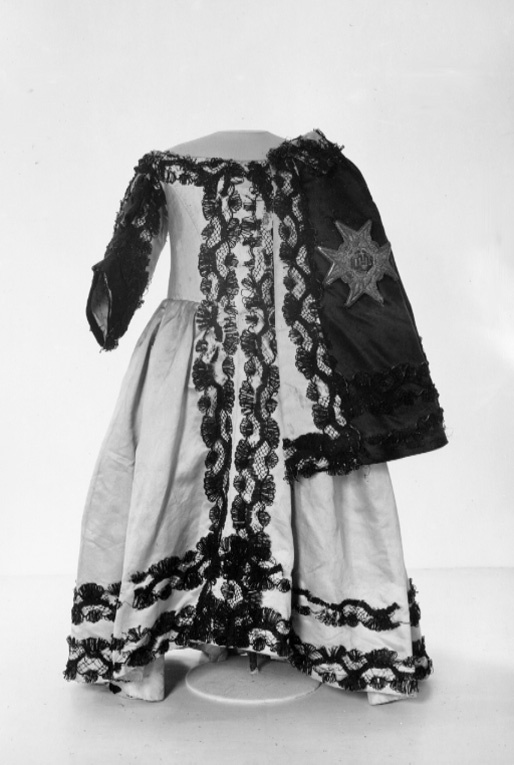 Livkolt av vit atlas garnerad med svarta spetsar. Kolten består av ett smalt liv med djup halsringning och en vid kjoldel. Livet är 205 mm högt med en styvnad fram och med en maskerad snörning med sex snörhål, mitt bak. Fyra kroksömmar, två fram och två bak på livet. Ett band av svart spets garnerar halsringningen. Spetsarna är 50 mm breda knypplade av lintråd med silkesomspunna sniljor. Smala, halvlånga ärmar. Vid ärmsluten snett skurna breda uppslag med ett 50 mm högt sprund. På uppslagen påsytt svart sidenatlas garnerad med ett band av svart spets. Tre band av svart spets längs med ärmen. På insidan av överärmen en dekor av en solfjäderformad kam av svart siden. På ryggen nedanför axlarna är två hängslen av svart spets med bottentyg av svart sidenatlas fastsydda, 570 mm långa och 57 mm breda. Mitt fram en dubbel rad av svart spets. Två lodräta iskurna fickor, 140 mm långa. Fyra kjolsömmar. Kjolen är i midjan sammandragen så att det bildas veck. Kjolen är kortare mitt fram. Den kantas i nederkanten av två rader av svarta spetsband. På insidan av nederkanten en 102 mm bred fåll. Stadkanter, 20 mm breda, av ett gul- och rödrandigt vävt sidenband. Serafimerdräkten ritades av Carl Hårleman och den följer de vuxna riddarnas dräkter vad gäller färg och material. Dräkten avviker från den vedertagna pojketiketten med dess åtsmitande liv, djupa halsringning och den vida kjoldelen. Kjolvidden är så anmärkningsvärd att den troligen var avsedd att bäras med underliggande höftkuddar. Kjolen är kortare mitt fram, troligen för att prinsen var låghalt och ostadig i sin gång. Hängslena fungerade troligen som stödband.