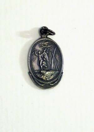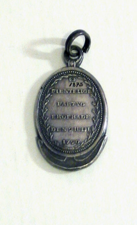 Oval medaljong, åtsida: Viktoria med två lagerkransar stående i fören på fartyg med svensk flagg och fälld rysk flagg, kulbård, signatur på kanten: "FEHRMAN" (Carl Gustaf Fehrman, 1746-1798). Frånsida: lagerkrans, text: "53 // FIENTELIGE // FARTYG // ERÖFRADE // DEN 9 JULII // 1790", kulbård. Medaljen är lagd på ett ankare, som sticker ut upptill och nertill.
