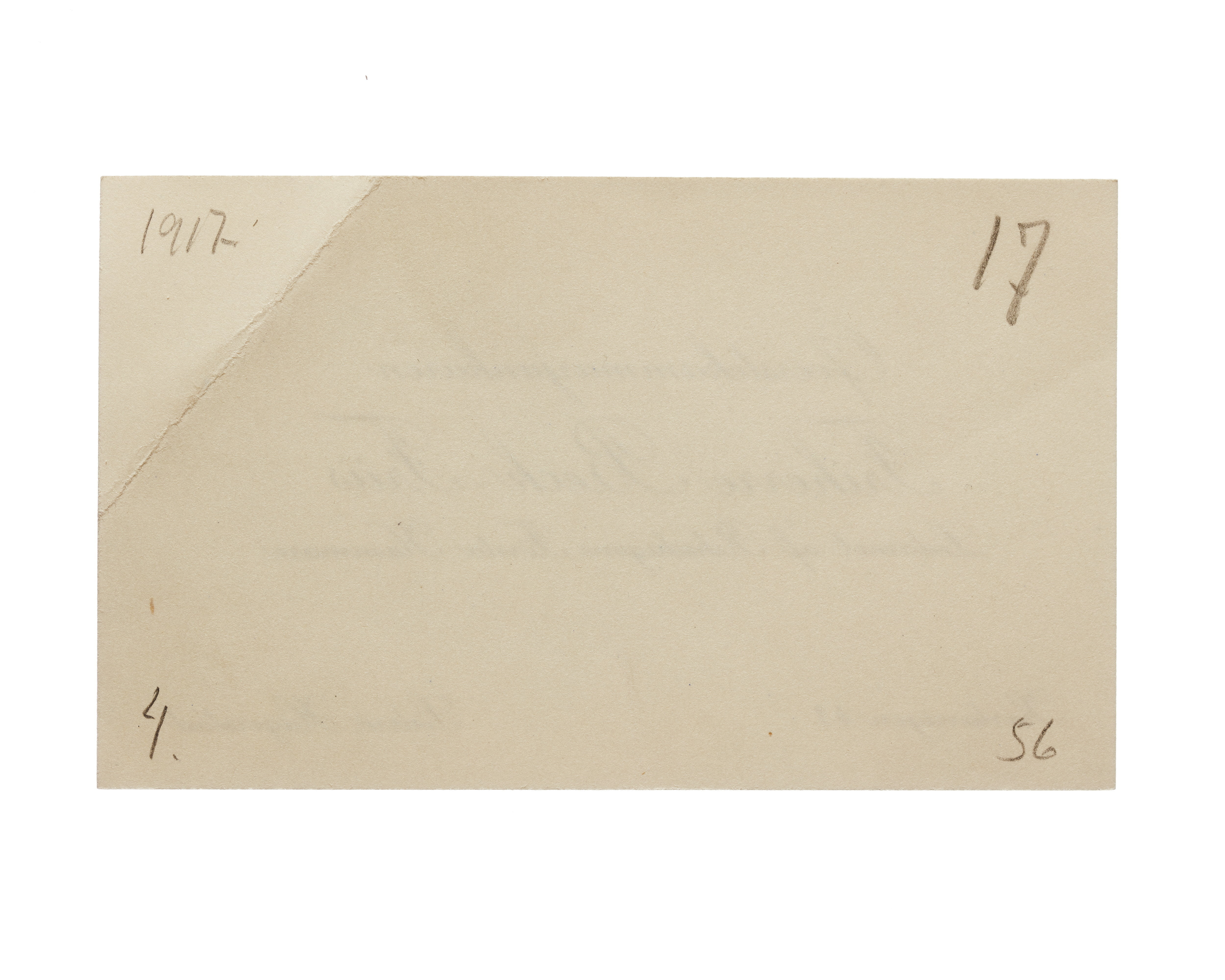 Fem visitkort från v. häradshövding friherre Johan Gabriel Beck-Friis, ledamot av riksdagens första kammare. Första kortet är utan datum. Adress (nedre högra hörnet) Karlavägen 43. Vikt i övre högra hörnet, det står på ovanför namnet "Statsrådet". Andra kortet daterat 1916, adrerss (nedre högra hörnet) Karlavägen 43, vikt i övre högra hörnet, det står på ovanför namnet "Statsrådet". Tredje kortet är utan datum, adress (nedre högra hörnet) Karlavägen 43, vikt i övre högra hörnet, det står på ovanför namnet "Statsrådet". Fjärde kortet daterat 1917, adrerss (nedre vänstra hörnet) Karlavägen 43 och (nedre högra hörnet) Söderö, Hägerstad, vikt i övre högra hörnet. Det står ovanför namnet "öfverstrkammarjunkaren". Femte kortet daterat 1918, adress (nedre vänstra hörnet) Karlavägen 43 och (nedre högra hörnet) Söderö, Hägerstad, vikt i övre högra hörnet. Det står ovanför namnet "öfverstekammarjunkaren".