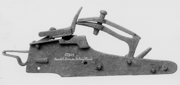 Snapplås, springlås, utfjäderslås, Sverige, 1600-talets början.