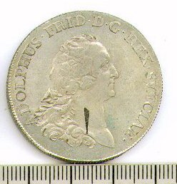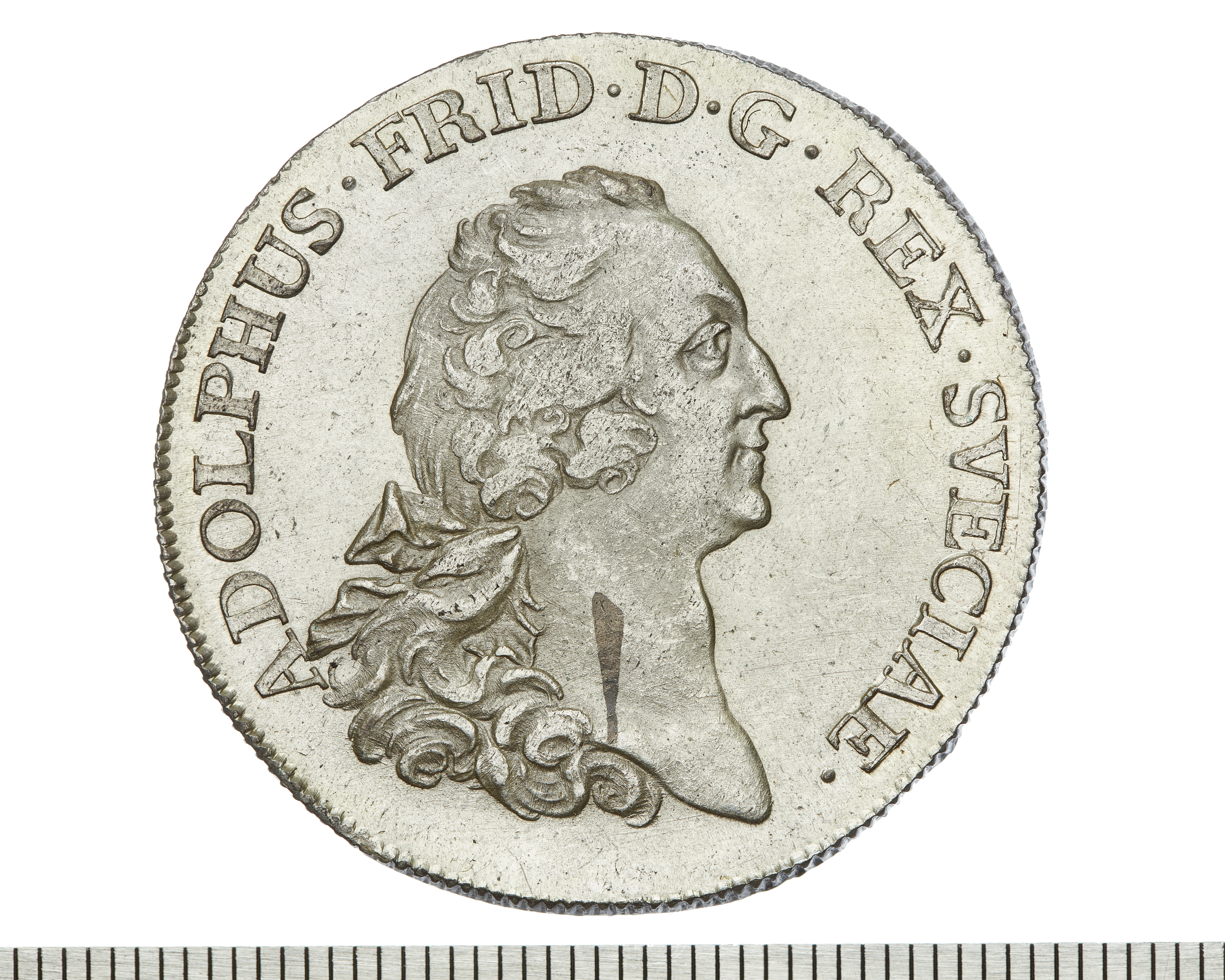 Upphov: Adolf Fredrik av Sverige. Media: Bonnevier, Helena. Ekonomiska museet - Kungliga myntkabinettet/SHM, (CC BY 4.0) Du får bearbeta och dela verket för alla ändamål, även kommersiella, så länge du anger upphovsperson och licensgivare.