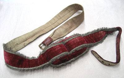 - 8 st täckesgjordar af läder med rödt sammet; hvardera försedd med en puta af do. (rödt sammet) med silfver i guldfransar samt en förgyld messingssölja.