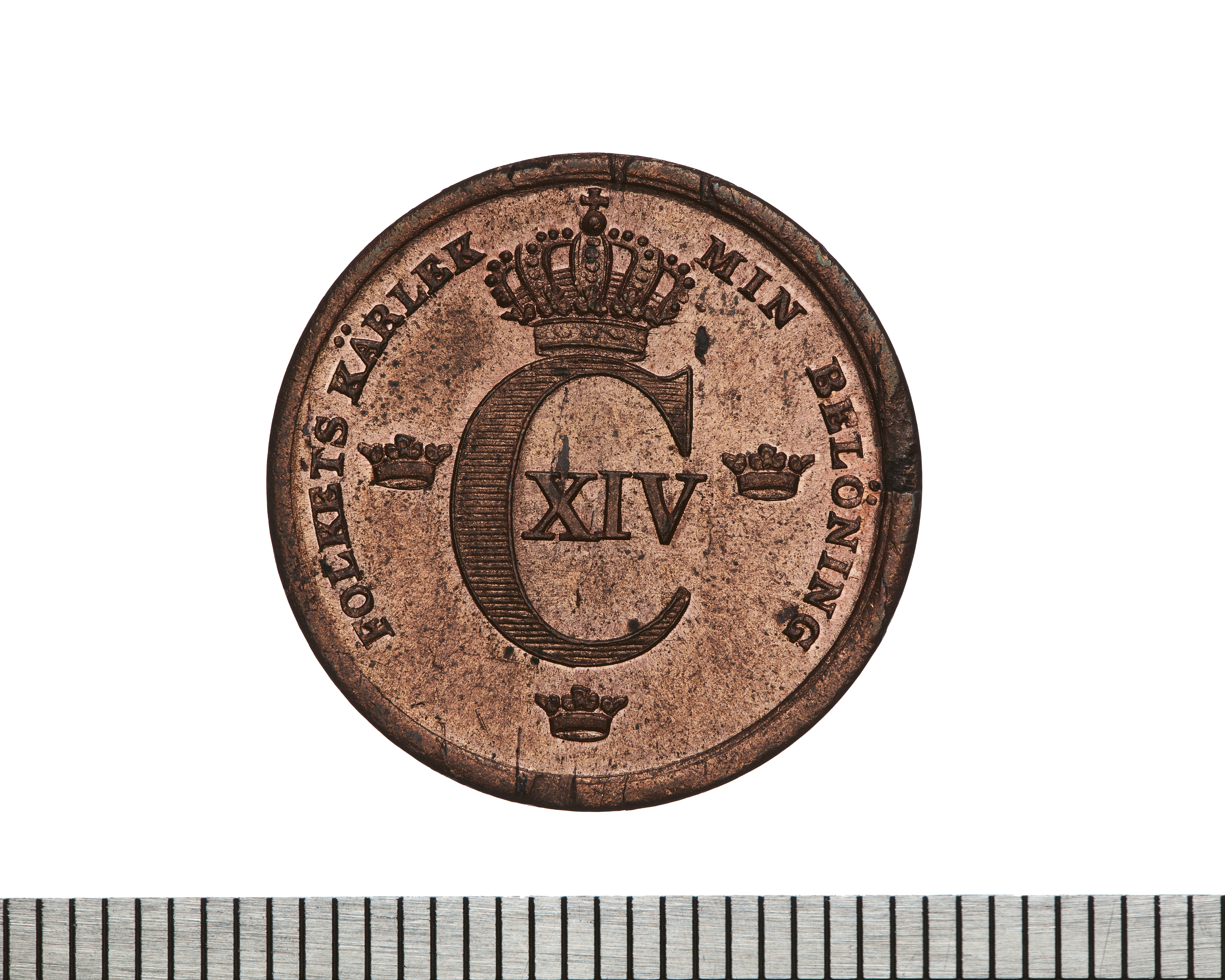 Upphov: Karl XIV Johan av Sverige och Norge. Media: Bonnevier, Helena. Ekonomiska museet - Kungliga myntkabinettet/SHM, (CC BY 4.0) Du får bearbeta och dela verket för alla ändamål, även kommersiella, så länge du anger upphovsperson och licensgivare.