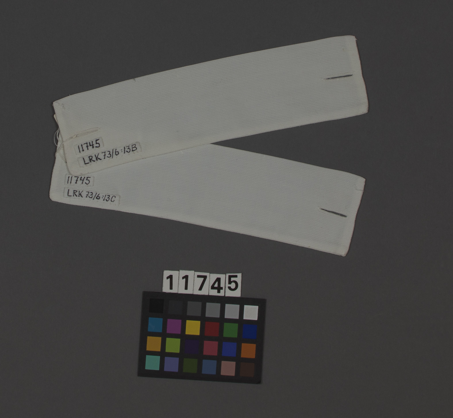 Lösmanschetter av vit bomullspiké rakt skurna med ett knapphål vid vardera sidan.