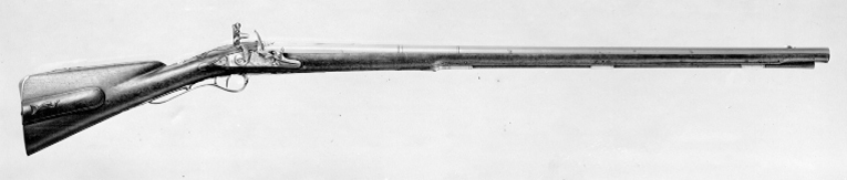 Rund, slätborrad pipa av stål, förtjockad i två avsatser vid kammaren, svarvade ringar vid övergångarna. Plana ytor med rundade framändar på pipans sidor. På kammarens ovansida en framåt avsmalnande list med profilerade kanter, vid pipbasen ej solfjädersliknande klack i stålsnitt, graverad dekor baktill. Därframför två guldstämplar, en rektangulär stämpel med en öppen krona och: " D // BA // RS ", därframför en stämpel med en öppen krona (Nya Stöckel nr 27 och 1232). Bakåt avsmalnande svansskruv blad med graverade rokokorankor. Riktmedel: Vid pipbasen klack med skålat sikte. Spolformigt korn av silver med framåtriktad spets. Fästning: Tre häften. Pipan fäst med krysskruv, bakre låsskruven genom svansskruvplattan samt två (urspr.tre) pipstift av stål. Flintås med plant låsbleck, fasade kanter, försänkt bakspets. Graverad dekor, rokoko rankor mot mörk, punsad bakgrund, framför hanen kartusch med signatur: " DAVID BARS // STOKHOLM ". S-formig, platt hane med fasade kanter, dekor som låsbleckets, välvt hanskruvhuvud med graverad blomma. Lös överkäke, käkskruv med päronformigt huvud. Kantig fängpanna med fals. Batteri med kantigt fängpannelock, skålad översida. Eldstål med ryggås, graverad kantdekor samt vid åsen. Batterifjäder med delvis fasade kanter, droppformigt fjäderlöv. Fästning: Två låsskruvar. Svagt böjd avtryckare. Konturerat avtryckarbleck. Helstock av valnöt, kolv med kindstöd och kolvlåda. Snidad dekor vid kindstöd, svansskruvblad, på kolvlådelocket samt vid varbygel och spetsrörka. Kolvlådelock med kantlist. Beslag av stål. Bakplåt med konturerad flik på kolvryggen, bardisanliknande spets, list med profilerade kanter, graverad kantdekor samt bladrankor. Tumplåt av silver i form av oval rokokokartusch, på mitten ovalt, slätt fält med graverat vapen, oval sköld, skraffering för rött, därpå två stolpvis ställda kors och däröver en öppen krona. Skölden lagd på St. Alexander Newskyordens kraschan, på övre spetsen en krona med sex kulor, nertill ett ordensband med otydligt tecken. Sidbleck av stål, plant med fasade kanter, försänkt bakspets, graverade rokokoraknor, på miten mot mörkpunsad bakgrund. En + två kantiga rörkor, slät, triangulär spets. Näsband av horn. Varbygel med list på bygeln, profilerade kanter. Rund främre stolpe, bakre stolpen kluven. Fri, delvis dubbel bakre arm med avslutning i form av ett flikigt blad, främre armen fint profilerad med avslutning i form av urna med flikigt bladknippe. Tillbehör: Laddstock av trä, l: 907 mm.