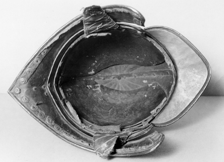 ANMÄRKNING: Om detta är beskrivning av föremålet kan inte ovan angivna beskrivning från 1748 där det ingår i ett rustningsgarnityr gälla. Numreringen stämmer däremot överens med den numrering hjälmen har ända fram till 1866.