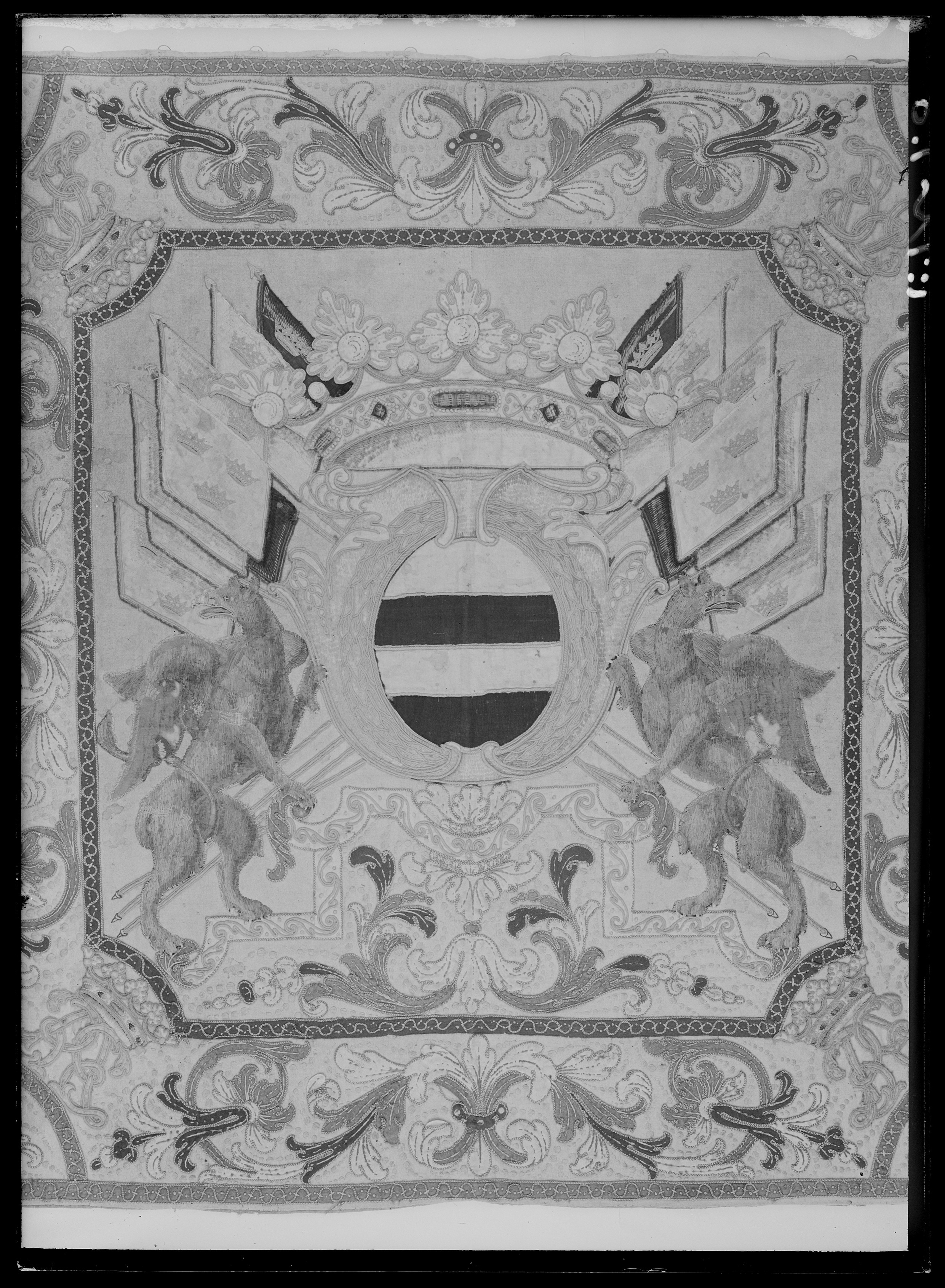 Handhästtäcke, troligen använt vid ambassadören Nils Bielkes intåg i Paris 1679.