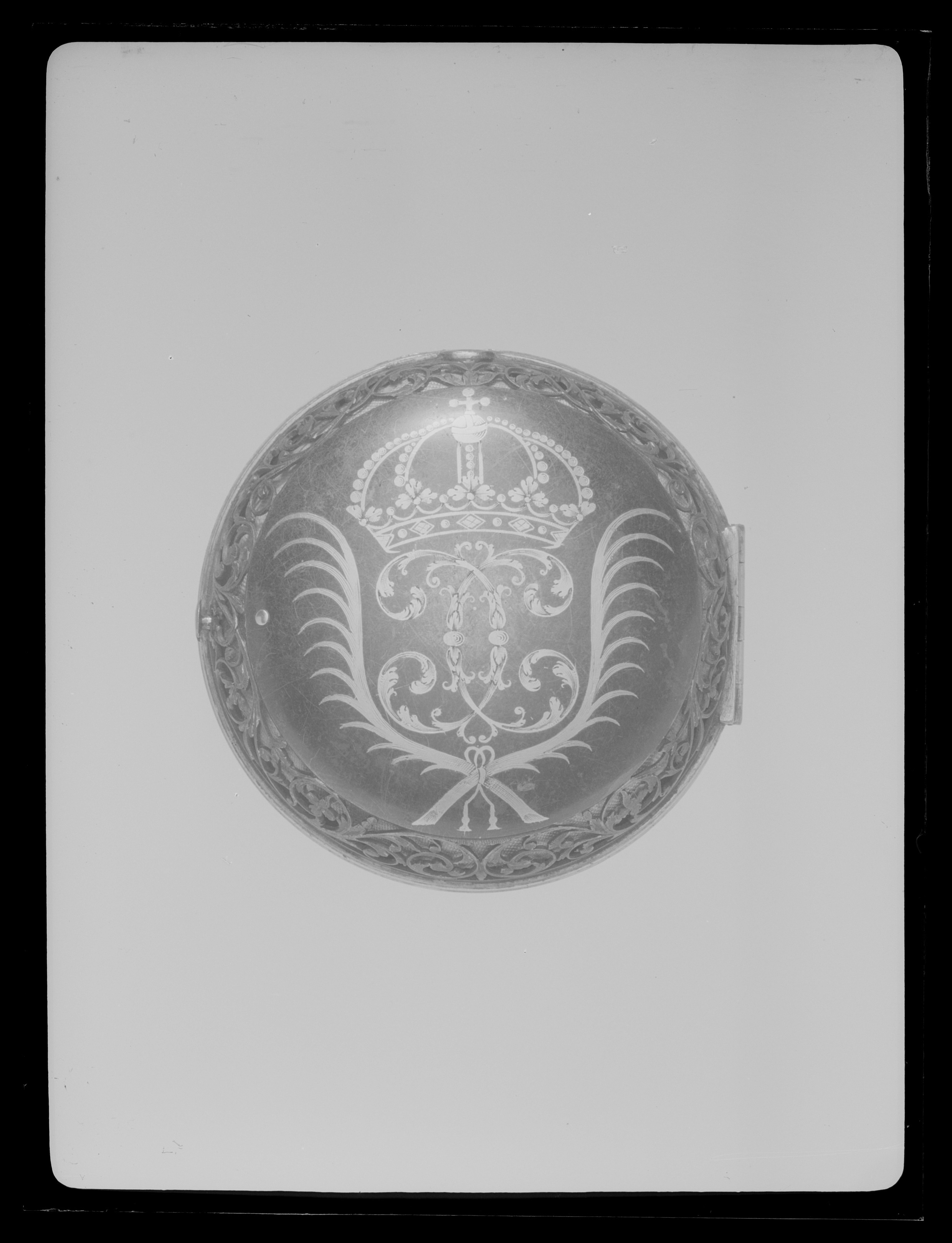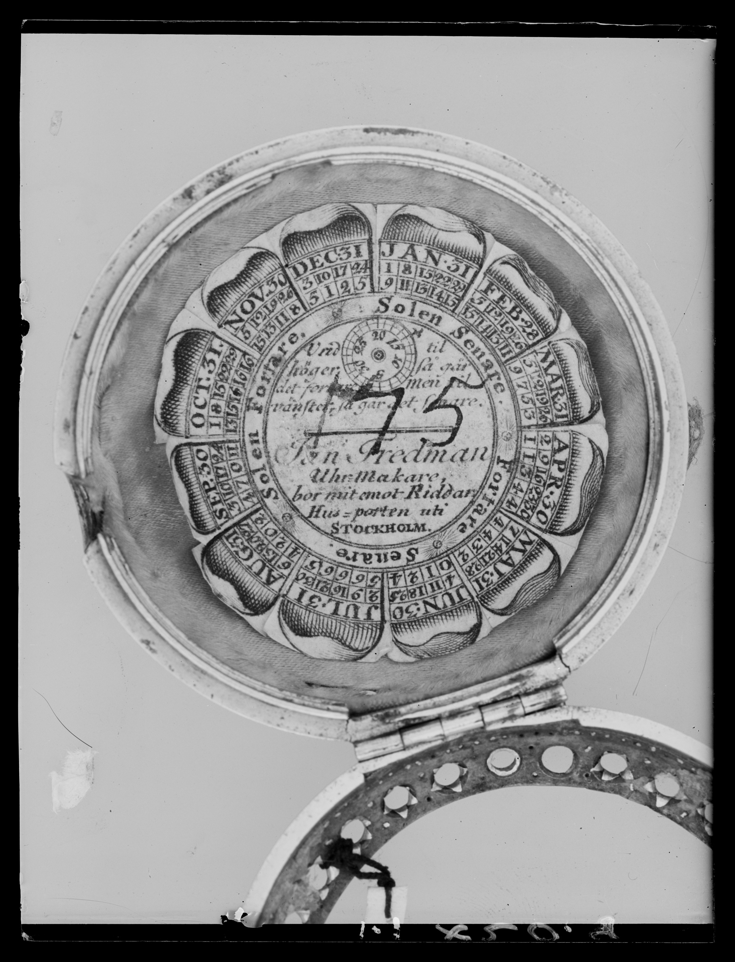 Urfoder till ur (nr 1120-1121), möjligen tillverkat i England, namnchiffret efter svensk förlaga.