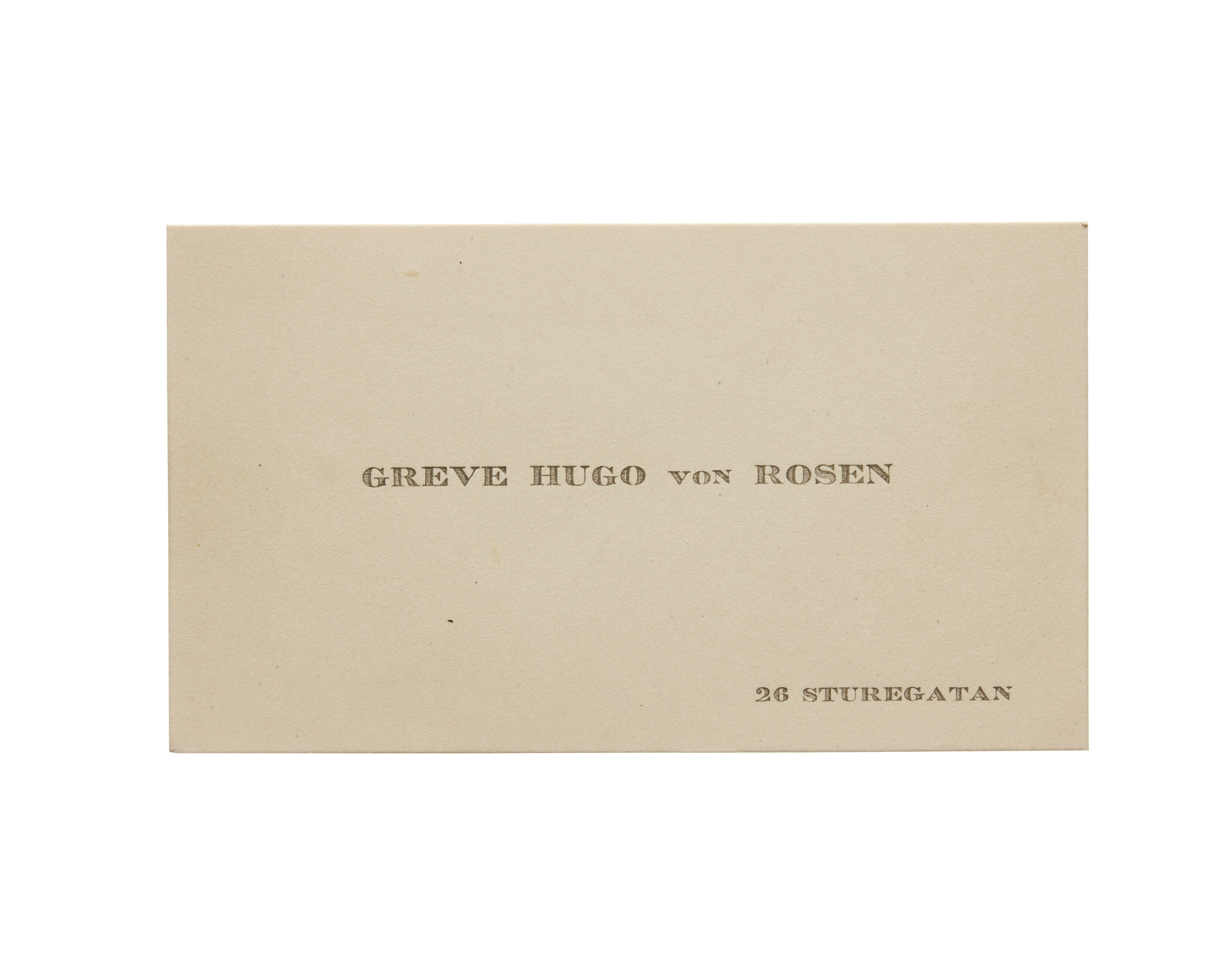 Ett visitkort från Greve Hugo von Rosen, daterat 1919. Adress (nedre högra hörnet) 26 Sturegatan.