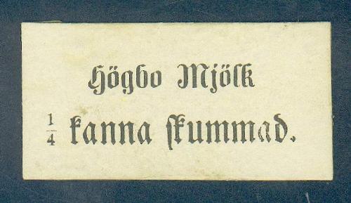 Upphov: Högbo Mjölk. Media: Anställd vid SHM. Ekonomiska museet - Kungliga myntkabinettet/SHM, (CC BY 4.0) Du får bearbeta och dela verket för alla ändamål, även kommersiella, så länge du anger upphovsperson och licensgivare.
