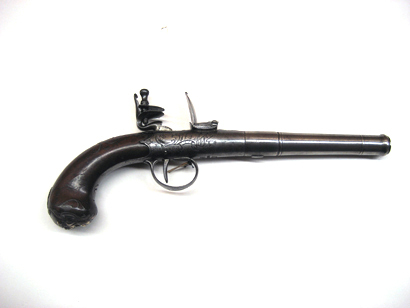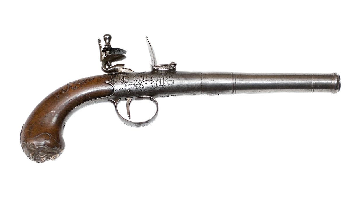 Flintlåspistol, T Richards, London ca, silverbeslag av Jeremiah Ashley.
