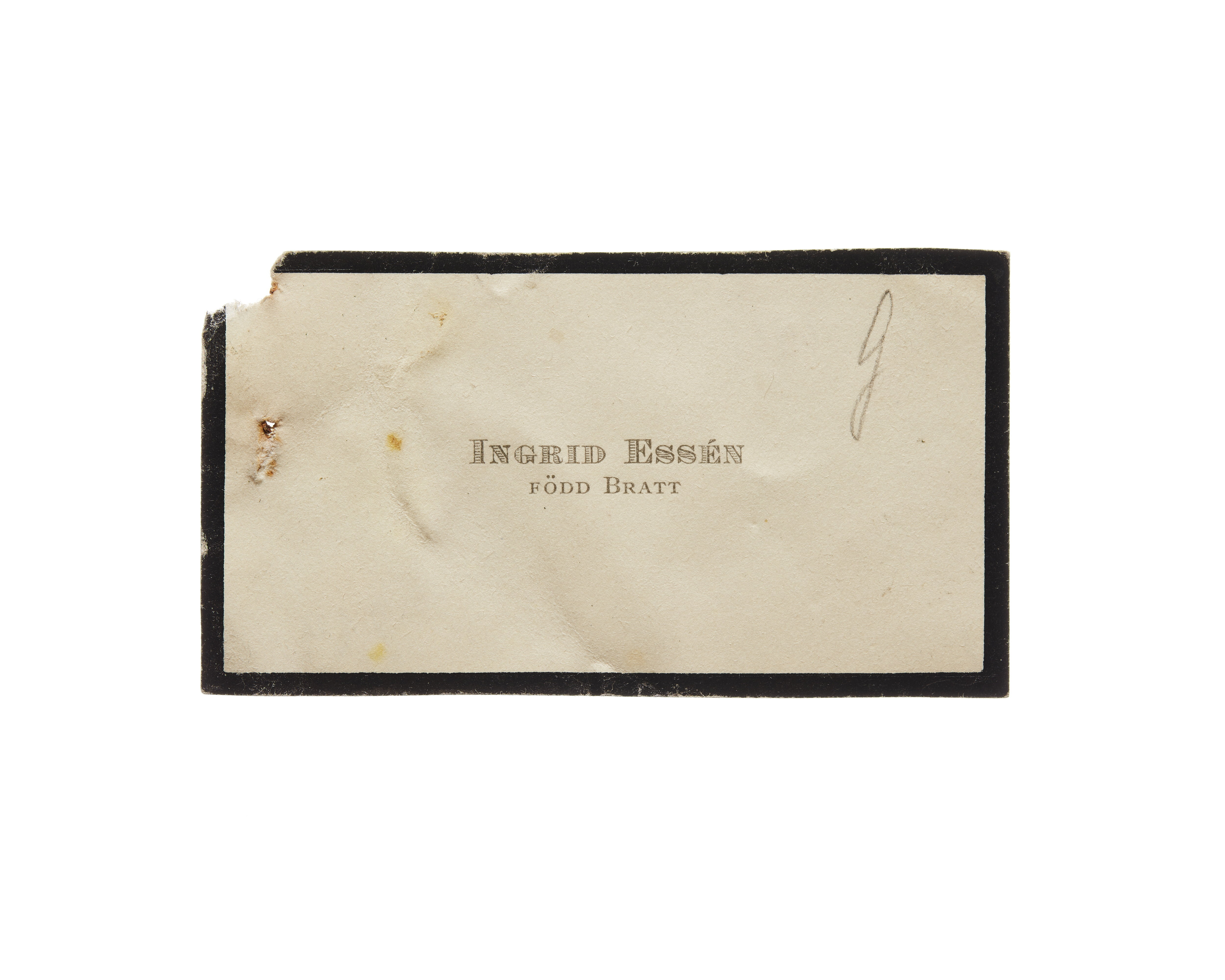 Visitkort från Ingrid Essén, f. Bratt.