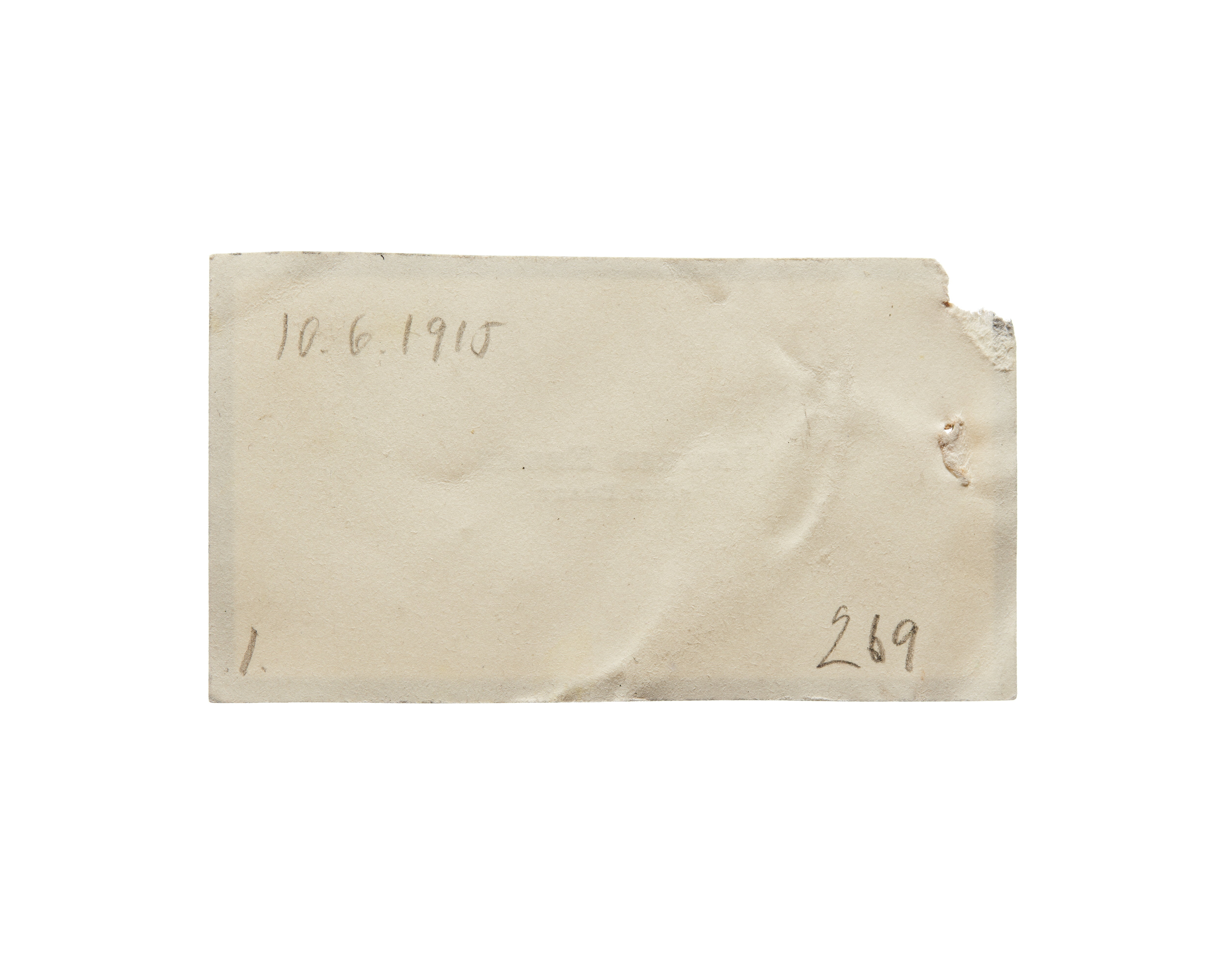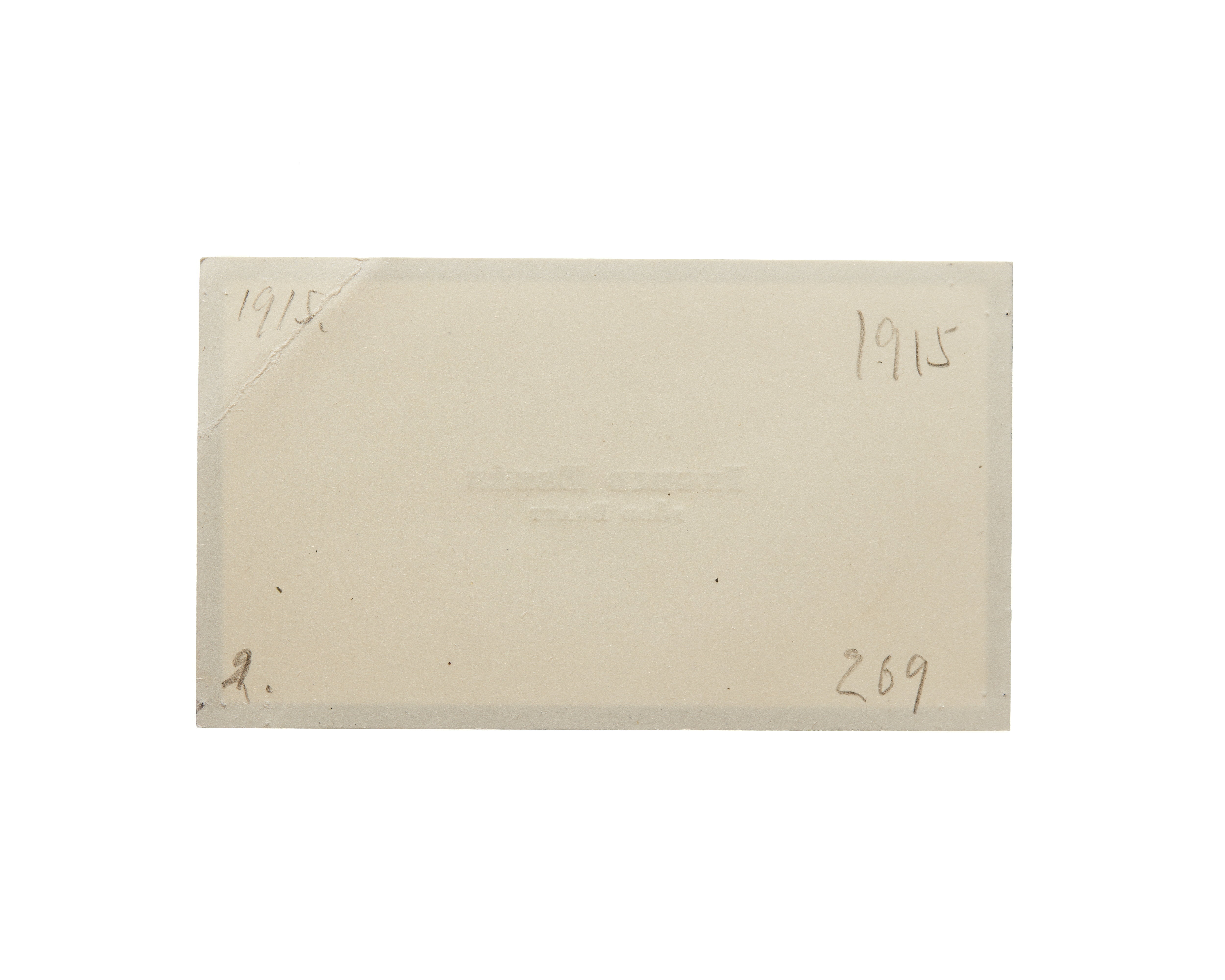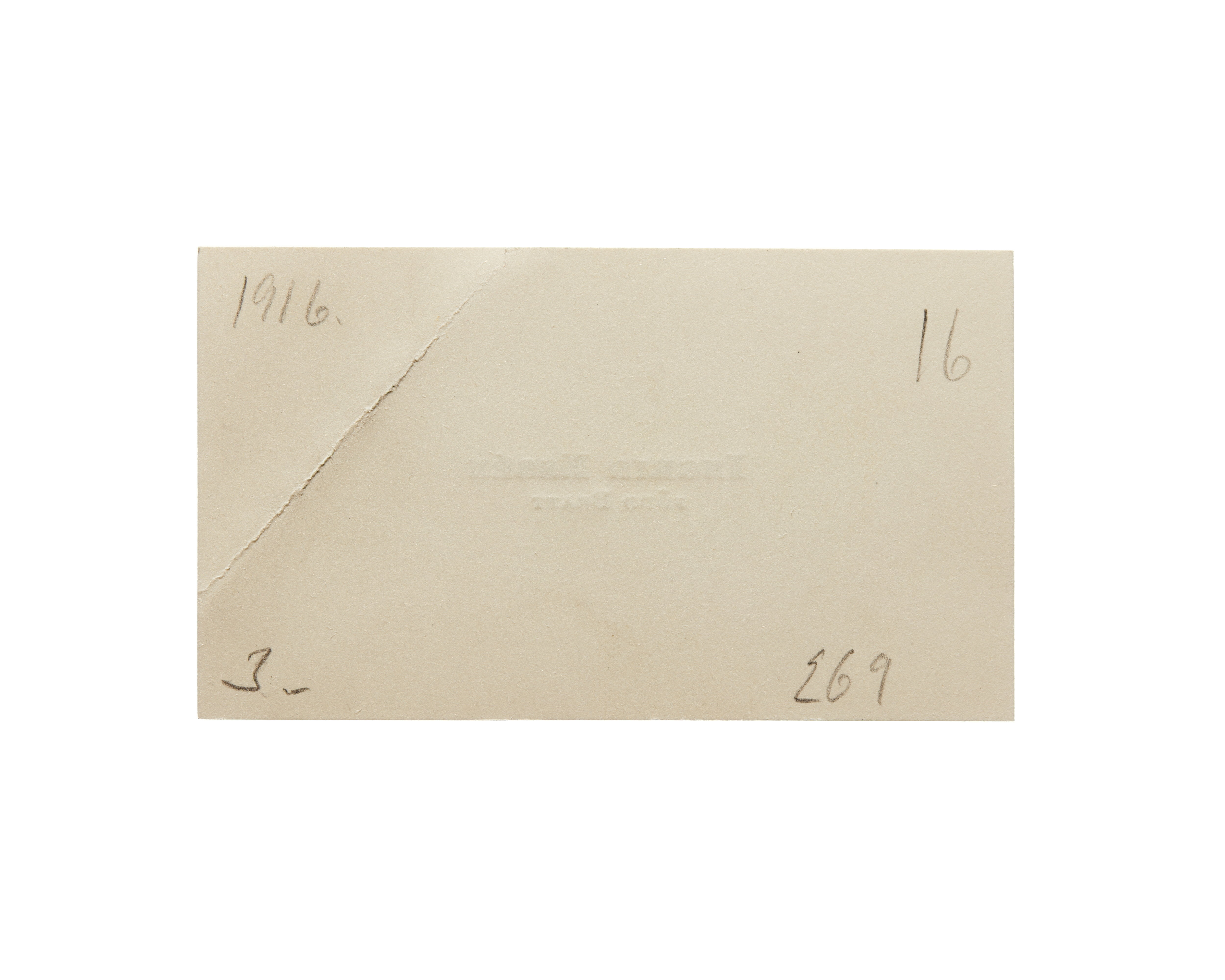 Tre visitkort från Ingrid Essén, f. Bratt. Första kortet daterat 10.06.1915 samt sorgkant. Överlämnat i samband med guldbröllop, 1915. Andra kortet daterat 1915, vikt i övre högra hörnet. Överlämnat i samband med Vilhelminas bilolycka i 1915. Tredje kortet daterat 1916, vikt i övre högra hörnet.