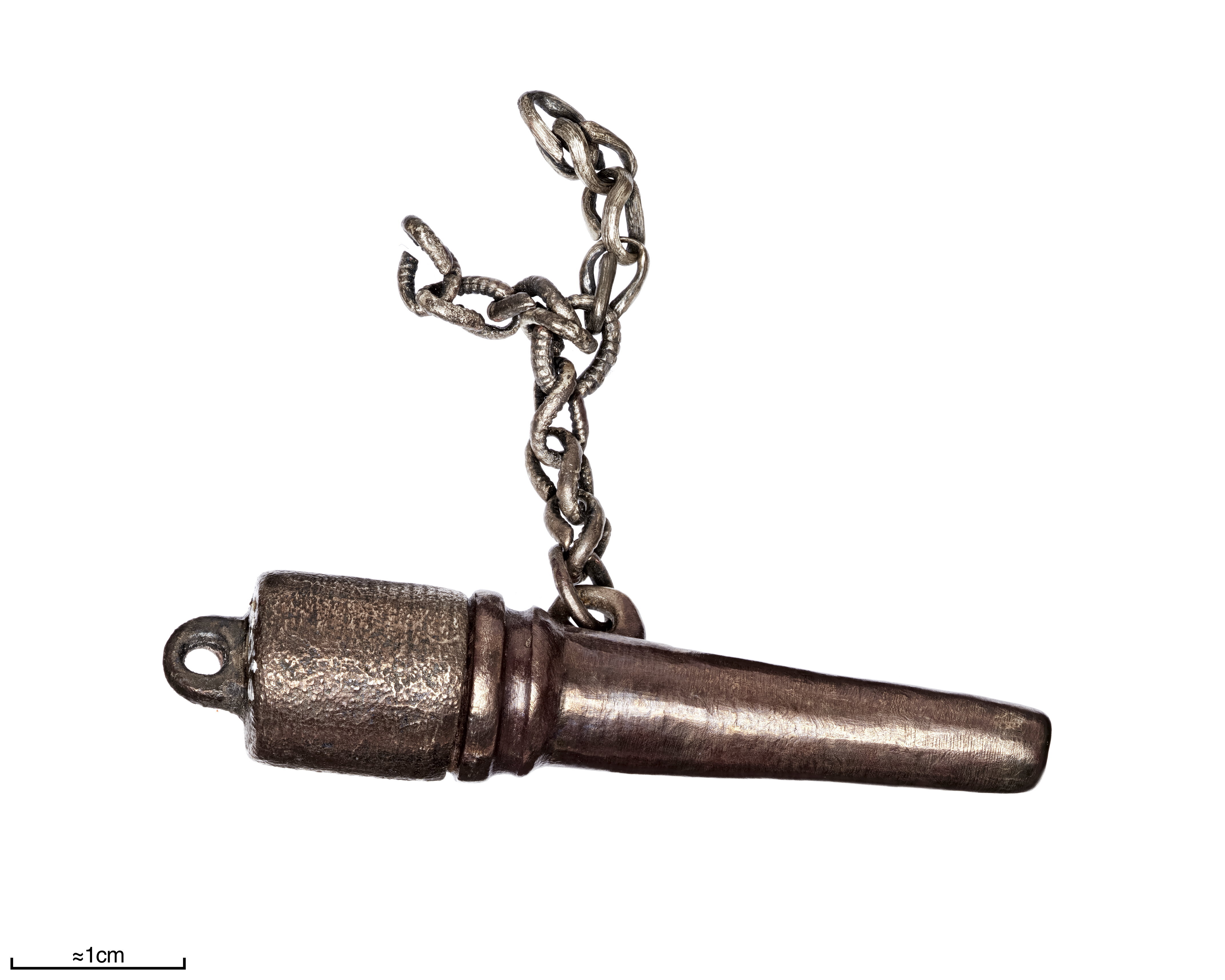 Nålhuset i Bj 550 är ett trumpetformat rör med ett cylindriskt lock i den bredare änden. Locket ligger an mot en dubbel vulst runt nålhuset. Bredvid vulsten finns en ögla för att fästa kedjan och en andra ögla på locket för att fästa det på kedjan. Ullfibrer och en järnnål sitter i röret.
