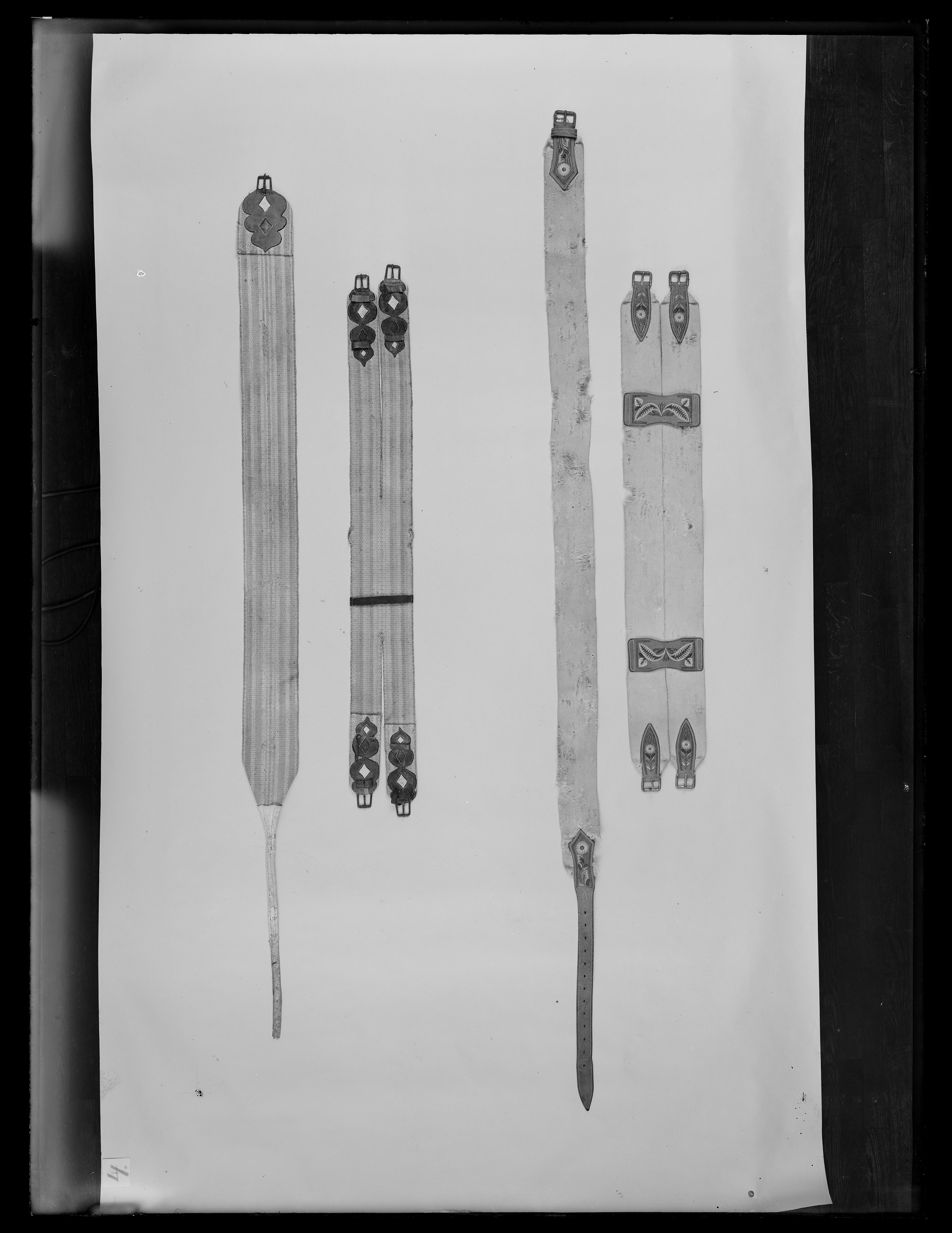 Ingående i franska gåvan till Karl XI 1673 för häst nr 3, "Le Crillan". Dubbel sadelgjord av gult, rött och vitt silke i randigt mönster. Två rektangulära söljor av järn i vardera änden med söljstycken av läder. Längd mellan söljornas ytterändar: 90 mm. Sadelgjordens ena sida är något längre än den andra (1110 mm resp. 1150 mm).