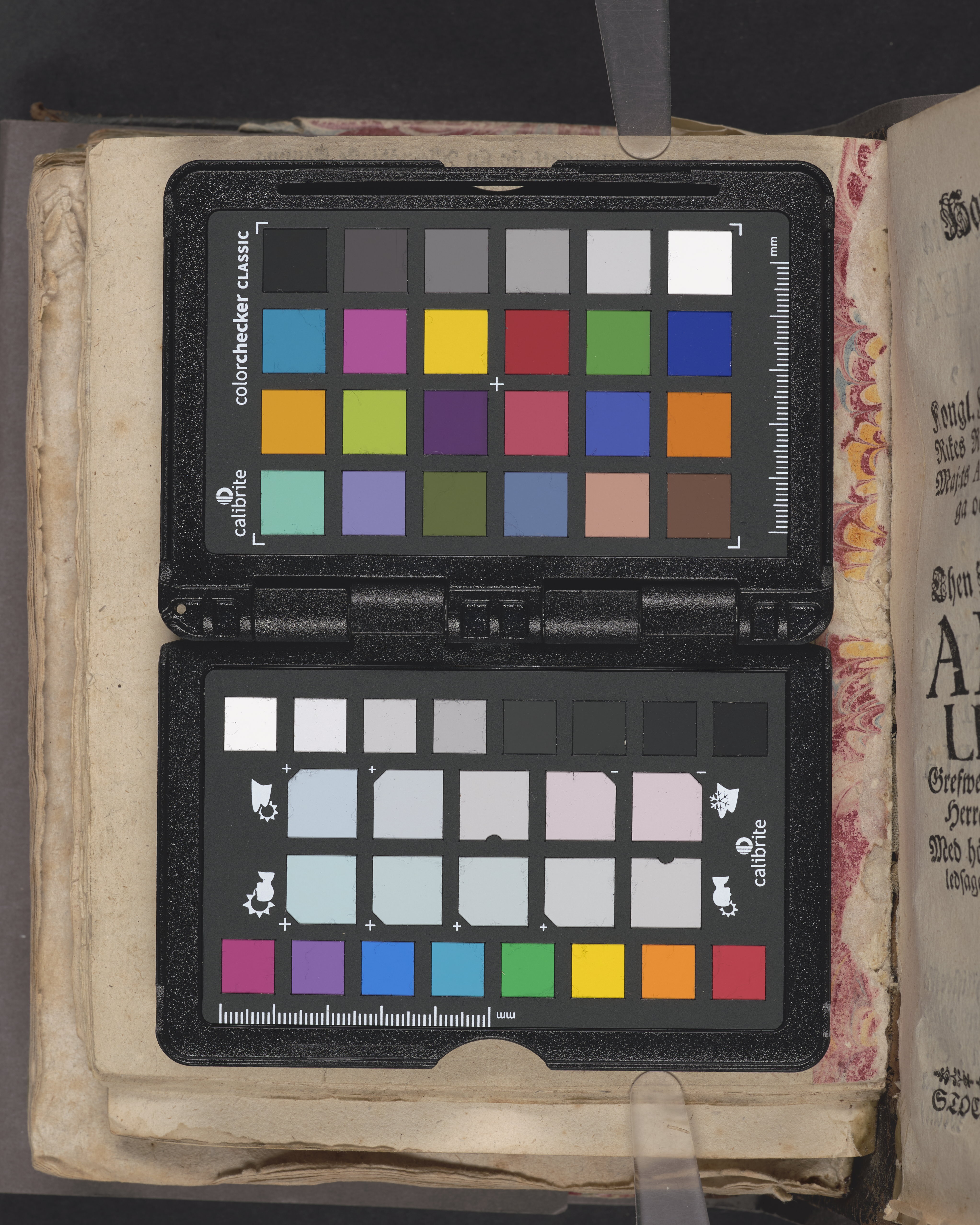 Band m. pärmar av marmorerat papper, rygg och hörn av getskinn. Pärmfyllnad: papp.