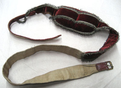 - 8 st täckesgjordar af läder med rödt sammet; hvardera försedd med en puta af do. (rödt sammet) med silfver i guldfransar samt en förgyld messingssölja.