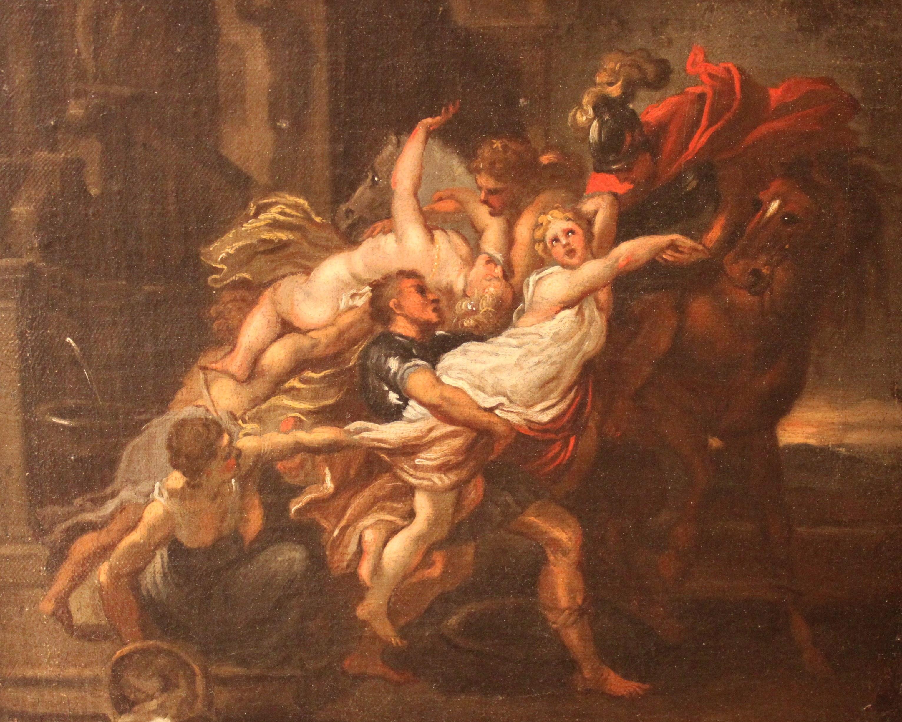 “Sabinskornas bortrövande”, olja på duk, Okänd konstnär