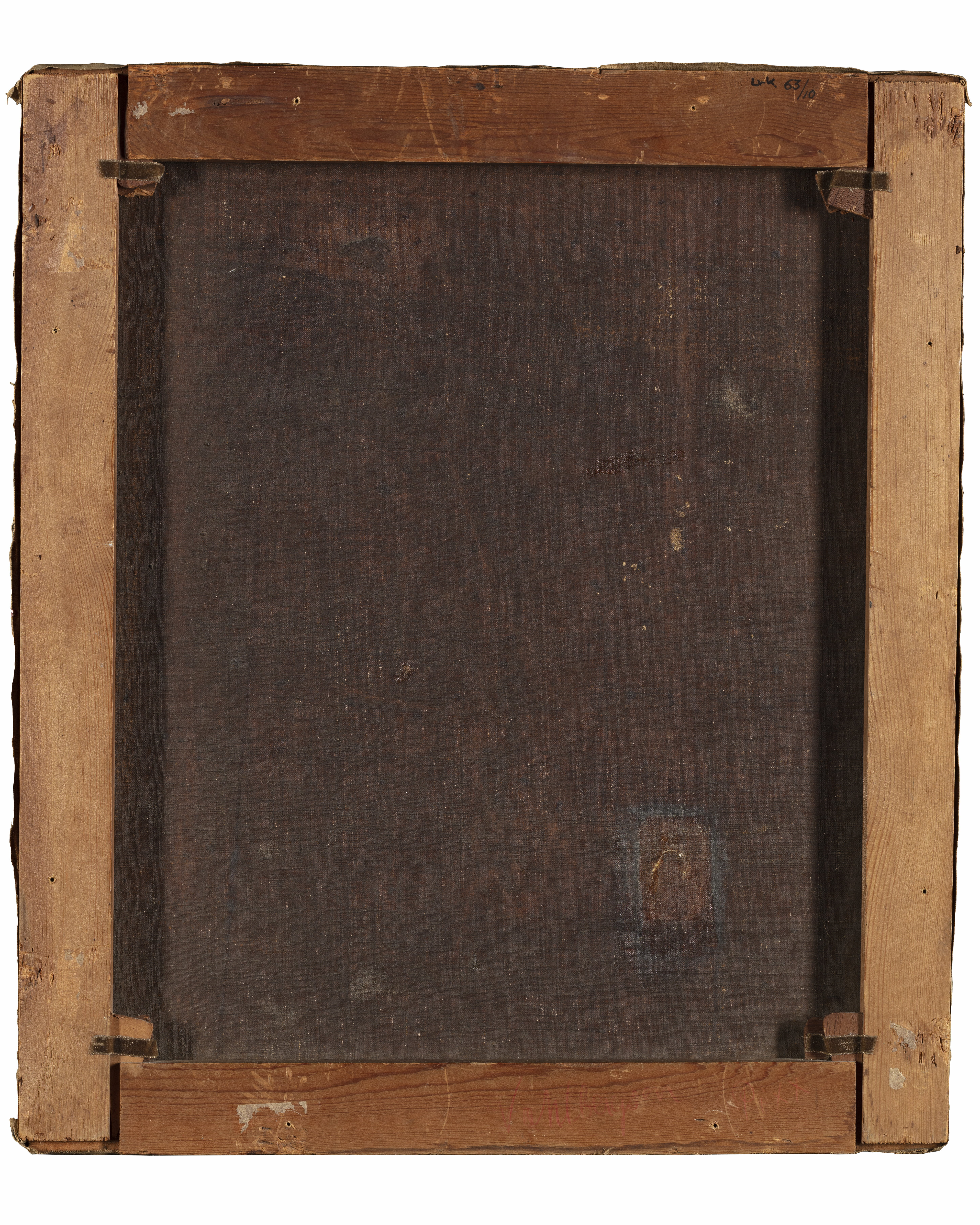 Bröstbild fas h., i fonden till höger utblick mot ett landskap med en vit tvåningsbyggnad. Oskar I är klädd i generalstabsuniform och bär följande ordenstecken i band: Svärdsorden, Nordstjärneorden, Vasaorden och Konung Carl XIII:s orden. Signering utefter ena sidan: "E. WAHLBERGSON PINX 1844". Den förgyllda ramen till målningen har överst en krona. E.W (eg Wahlberg) 1808-65. Porträttet är utfört precis vid trontillträdet 1844. Wahlbergson var elev vid konstakademin under Fredrik Westins ledning. W hade även studerat i Düsseldorf och var främst porträttmålare och kopist.