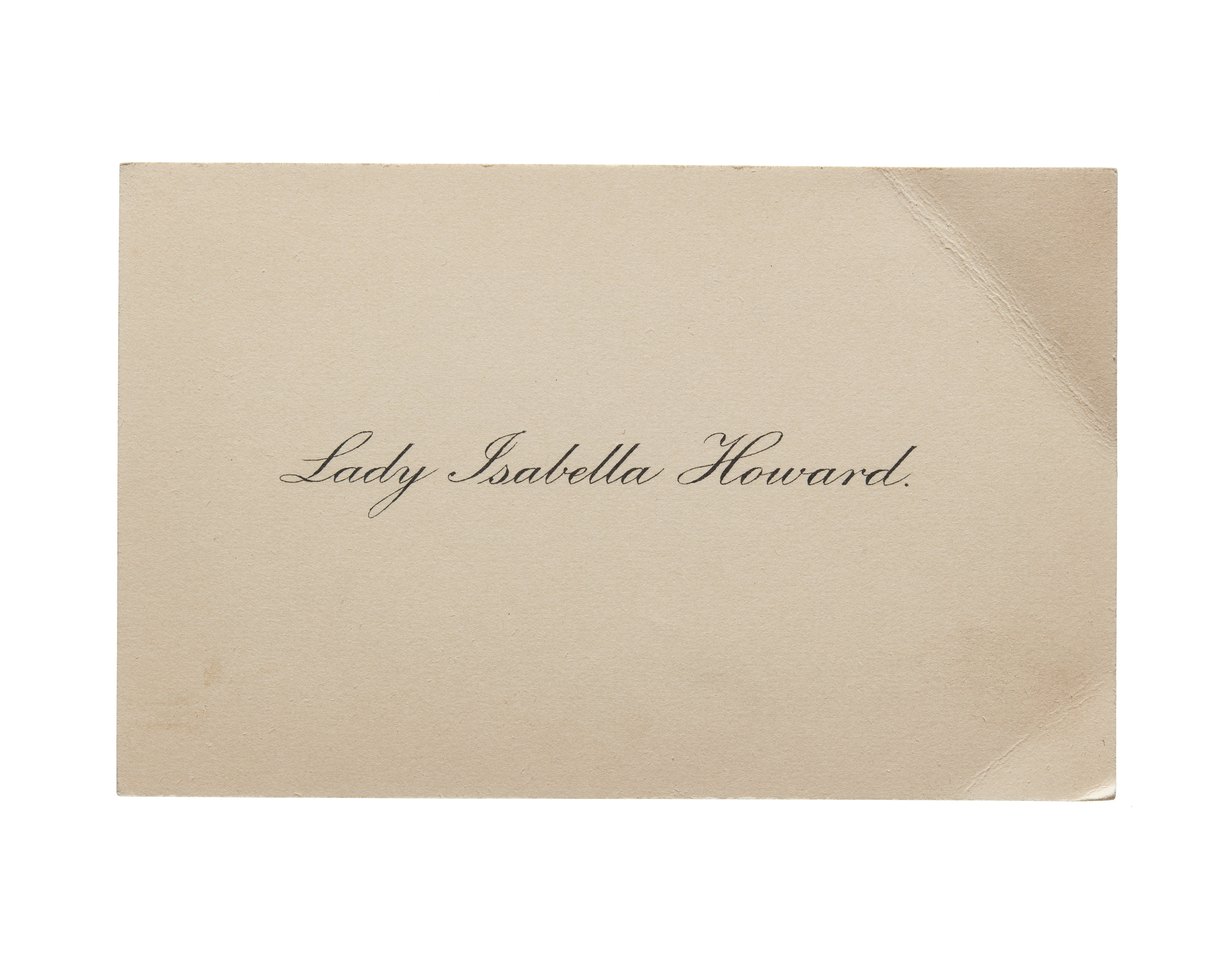 Ett visitkort från Isabella Howard, daterat 1914, vikt i övre högra hörnet.
