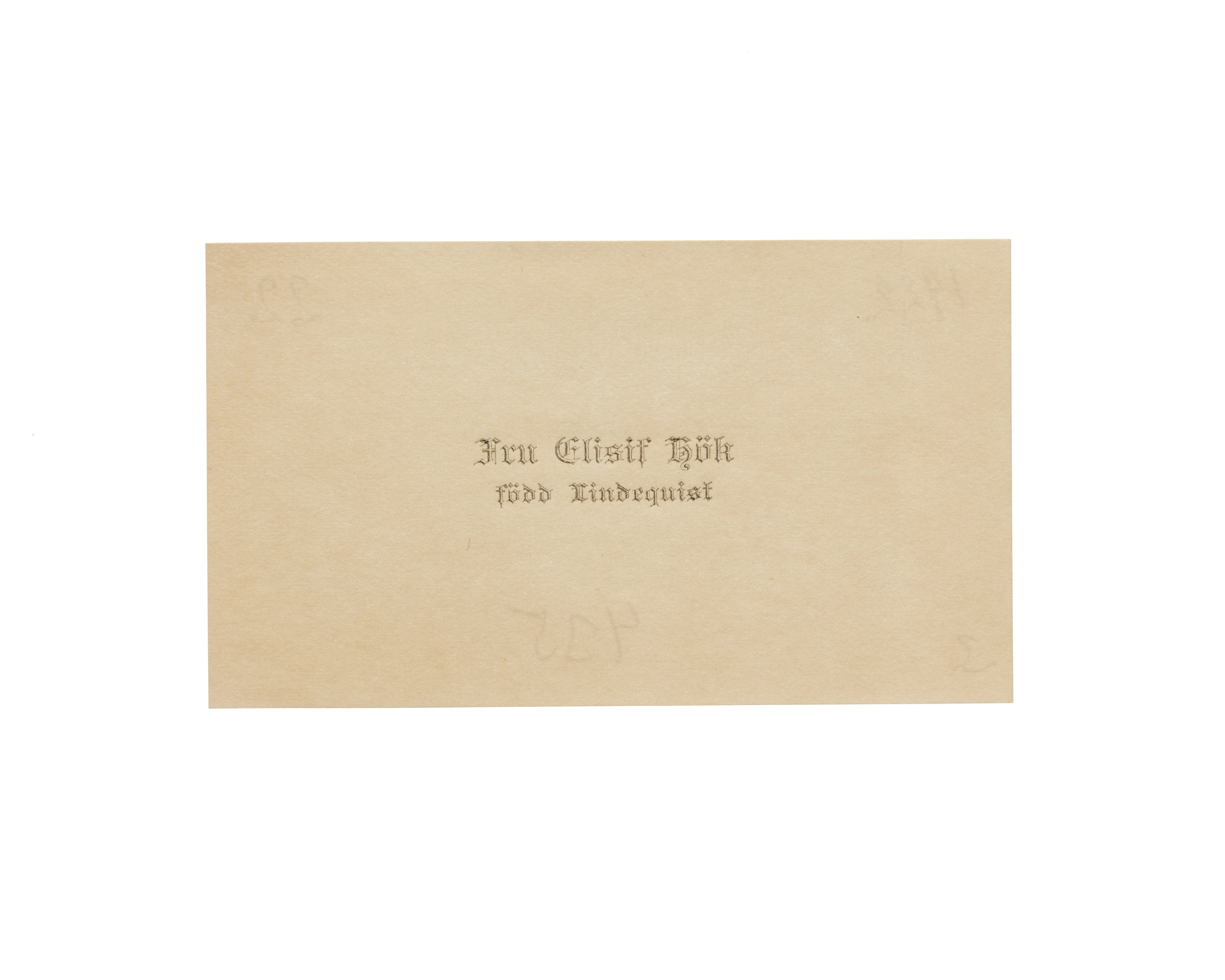 Visitkort från Elisif Hök, f. Lindequist.