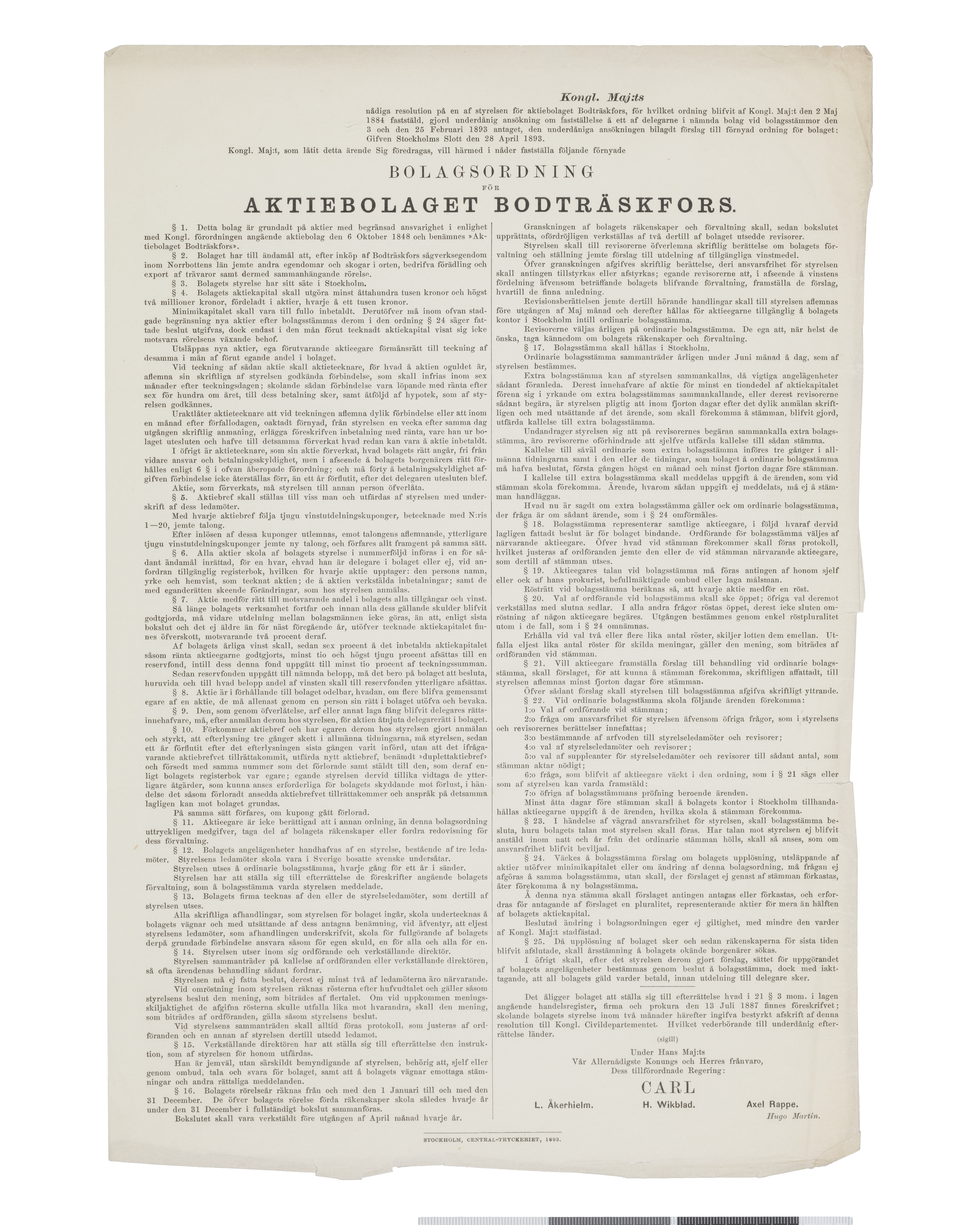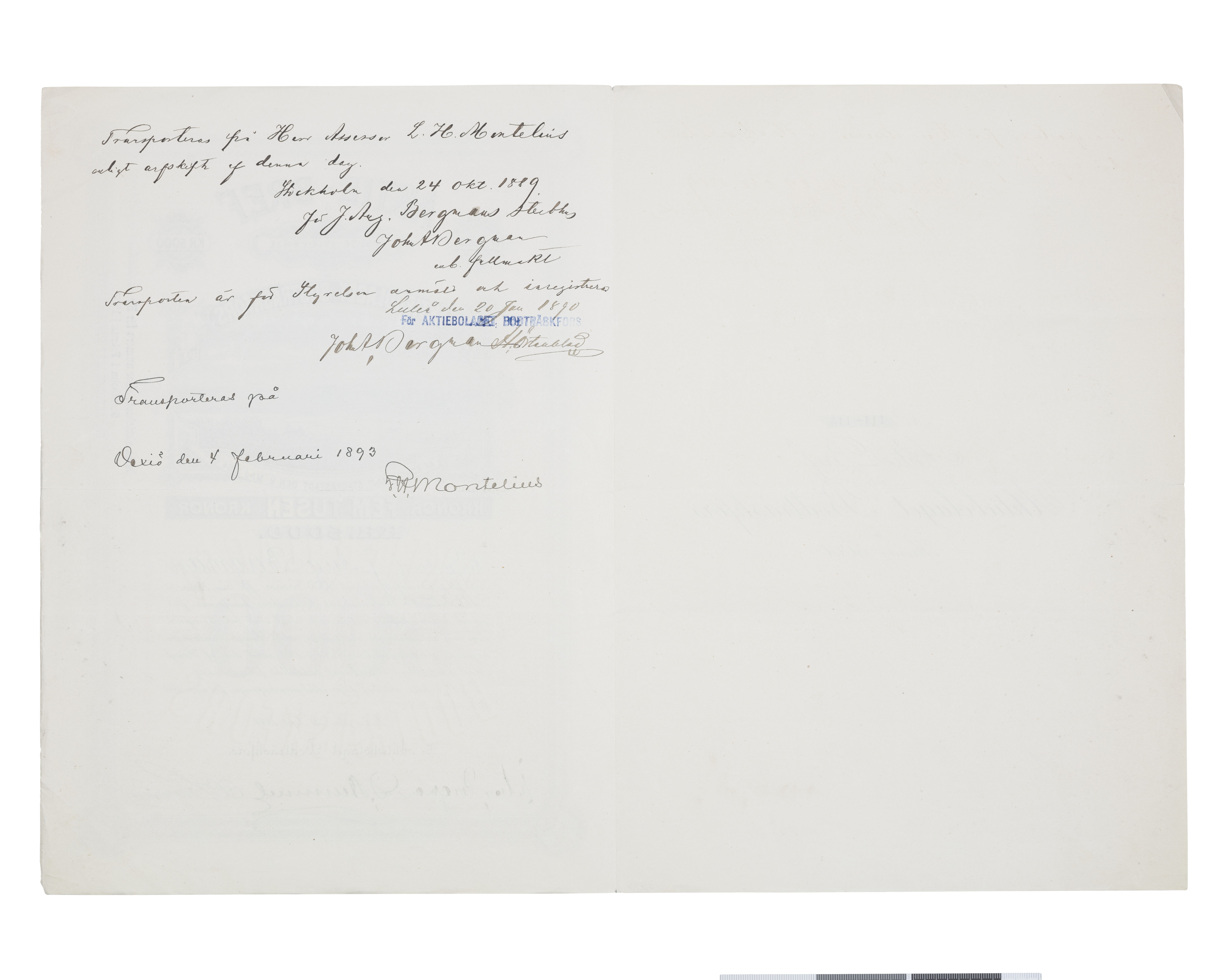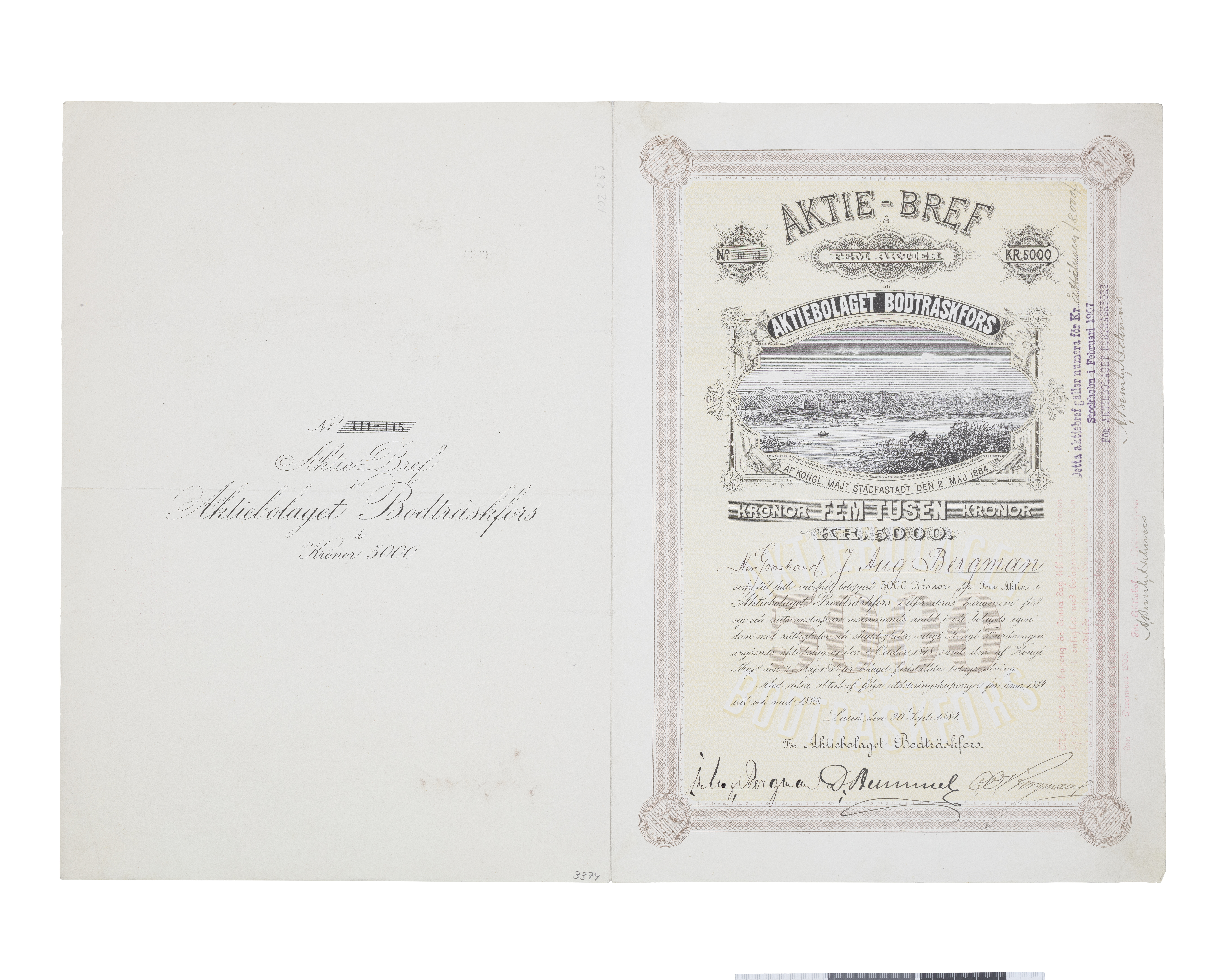AKTIE-BREF No 111-115 Kr 5000 AKTIEBOLAGET BODTRÄSKFORS