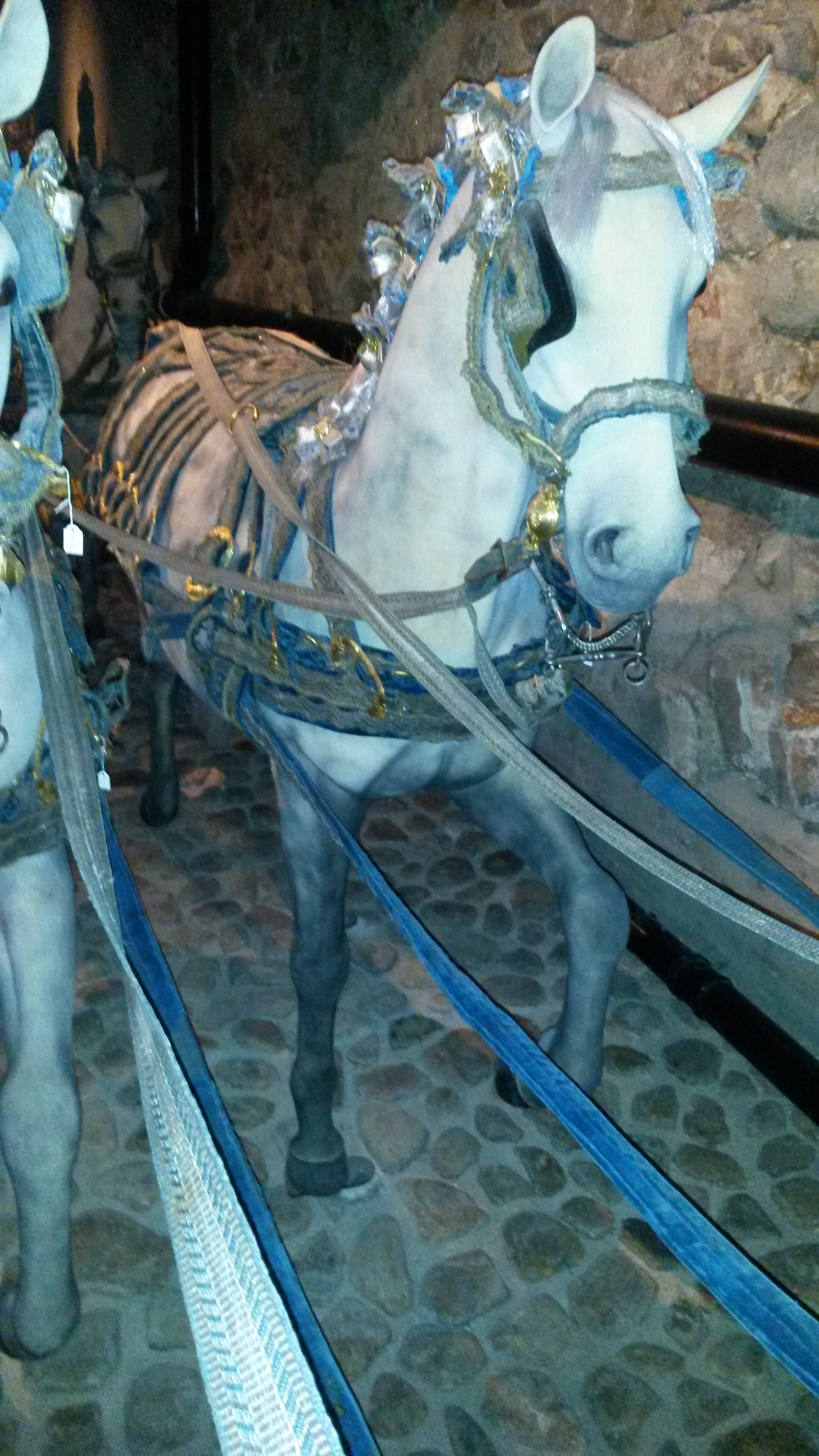 Huvudlag till seldon ( "nr 1", gnr 30:115:1) till kröningsspannet. Remmarnas stommar av läder överklädda med blå sammet på framsidan kantade med 7 mm bred guldfrans och i mitten en 20 mm bred silvergalon. På huvudet en 400 mm lång och 70 mm bred rem som förgrenar sig i två, en främre och en bakre 35 mm breda, på höger och på vänster sida. Mellan de främre remmarna ett tvärgående pannband. 250 mm från mittpunkten på huvudet avslutas de 4 remmarna. De främre remmarna och den högra bakre remmen är fästa i de övre mässingspännena. Mässingspännena 90 mm långa och 60 mm breda. Vid spännet på den främre högra remmen en skygglapp 150 mm lång och 160 mm bred, och en rosett 100 mm i diameter. Rosett av blått sidenband kantad med en 10 mm bred guldspets och på mitten en 20 mm bred silverspets. Stomme av linne. I rosettmitten en av silverlan klädd knapp, kantad av en guldfrans och en mindre rosett i silver. Rosetten fastbunden med ett blått linneband. En fortsättning på de främre remmarna med ett par 500 mm långa och avslutas i de nedre spännena som fäste för betslet. Den bakre högra remmen 570 mm lång och avslutas med ett spänne. Utgår från det högra bakre spännet att fästas i jämnhöjd med det vänstra främre spännet. Anmärkning: Pannbandet sitter endast fast i högra främre remmen. Silvergalonen uppriven. 150 mm på främre vänstra remmen saknas. Obs! Skygglappen. Konserverad. (Besrkivning avser föremålet innan konserving).