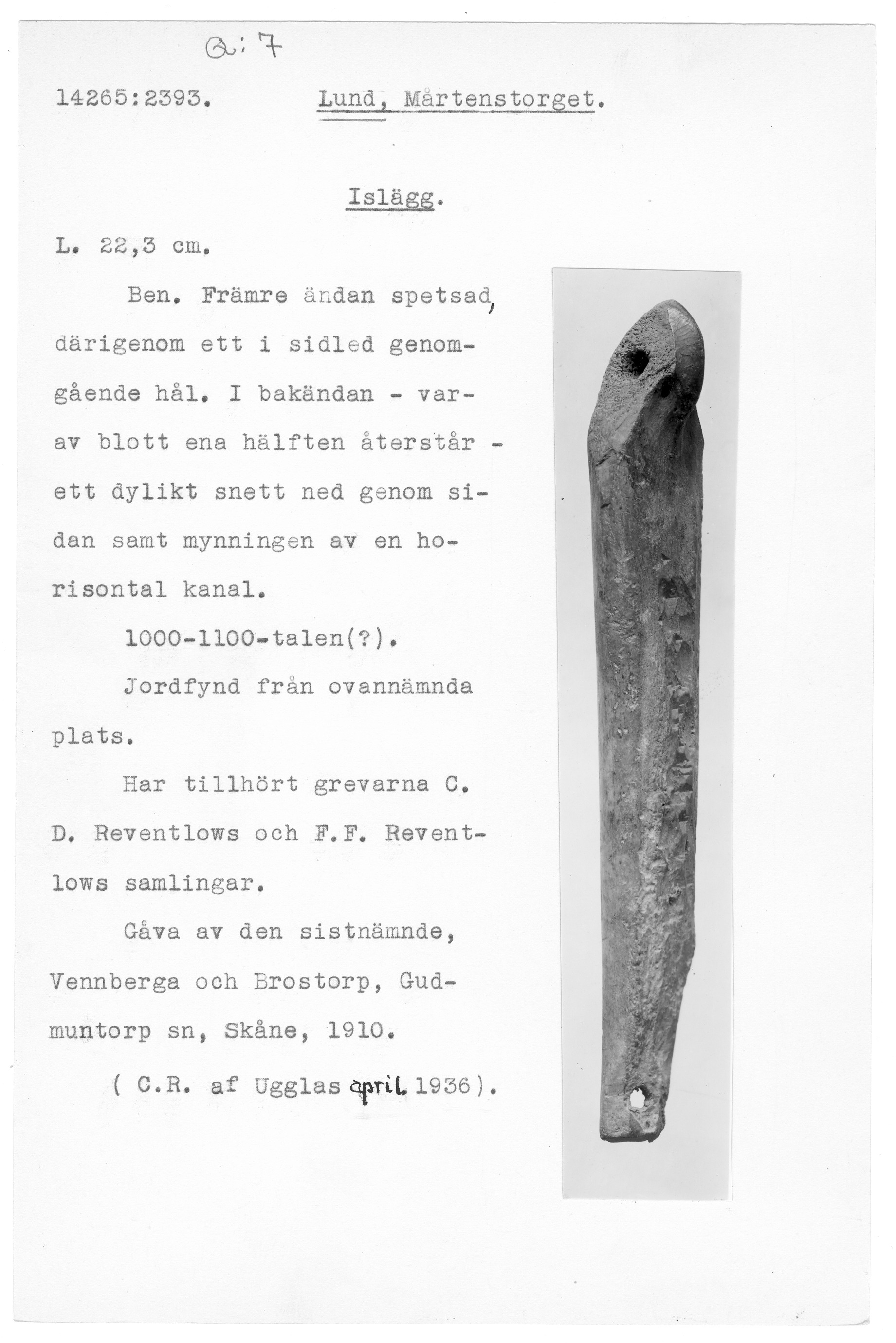 | Föremålsnummer |