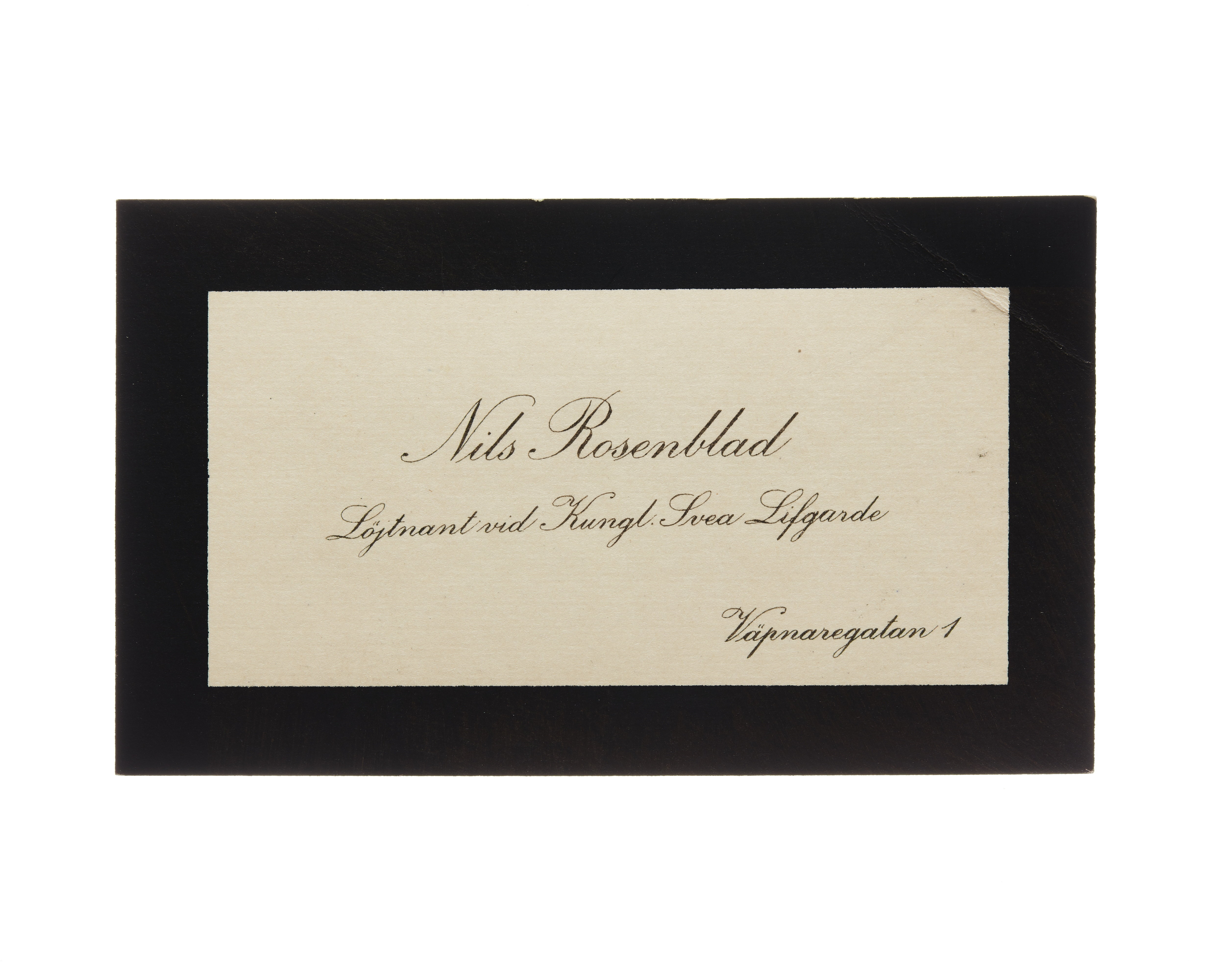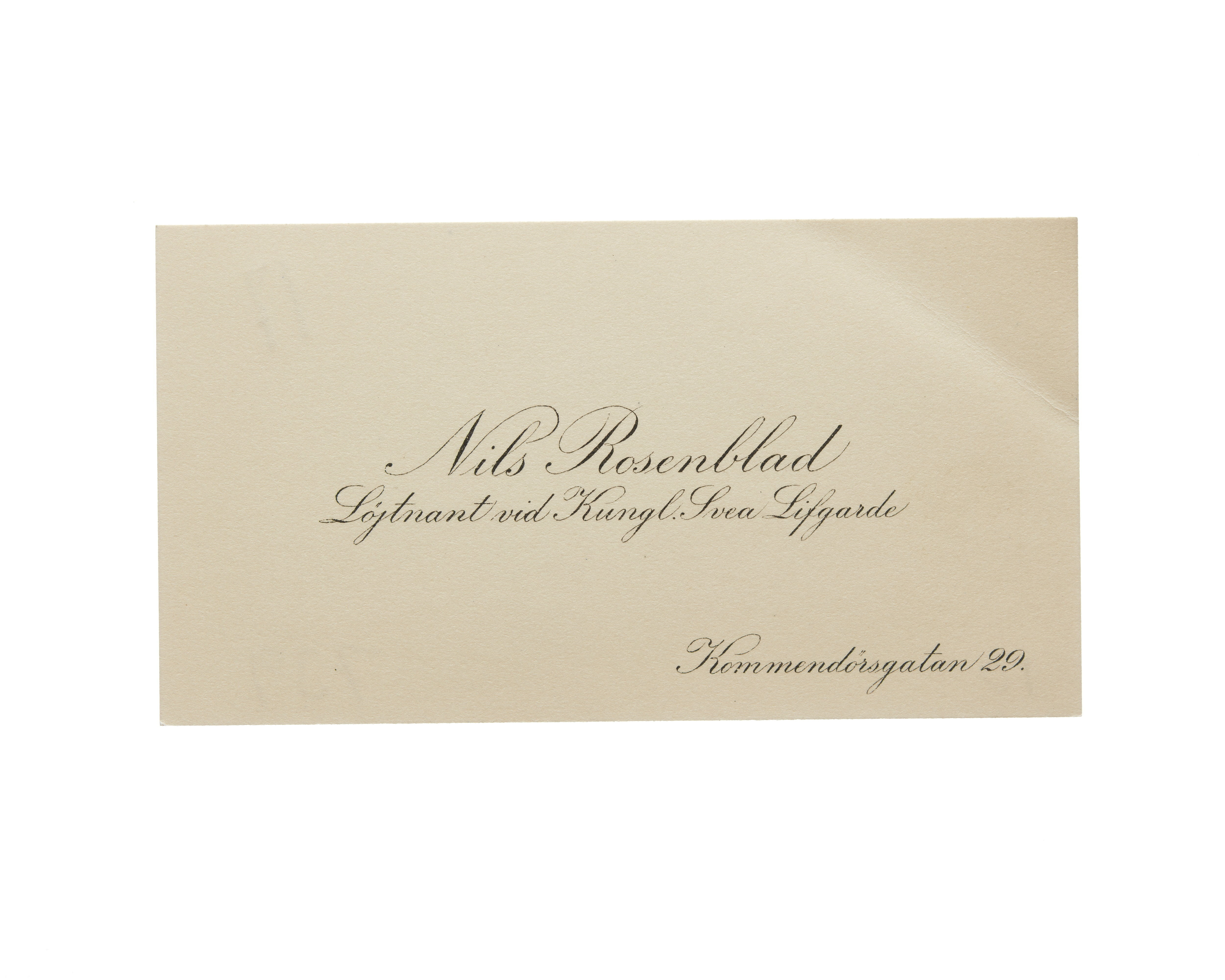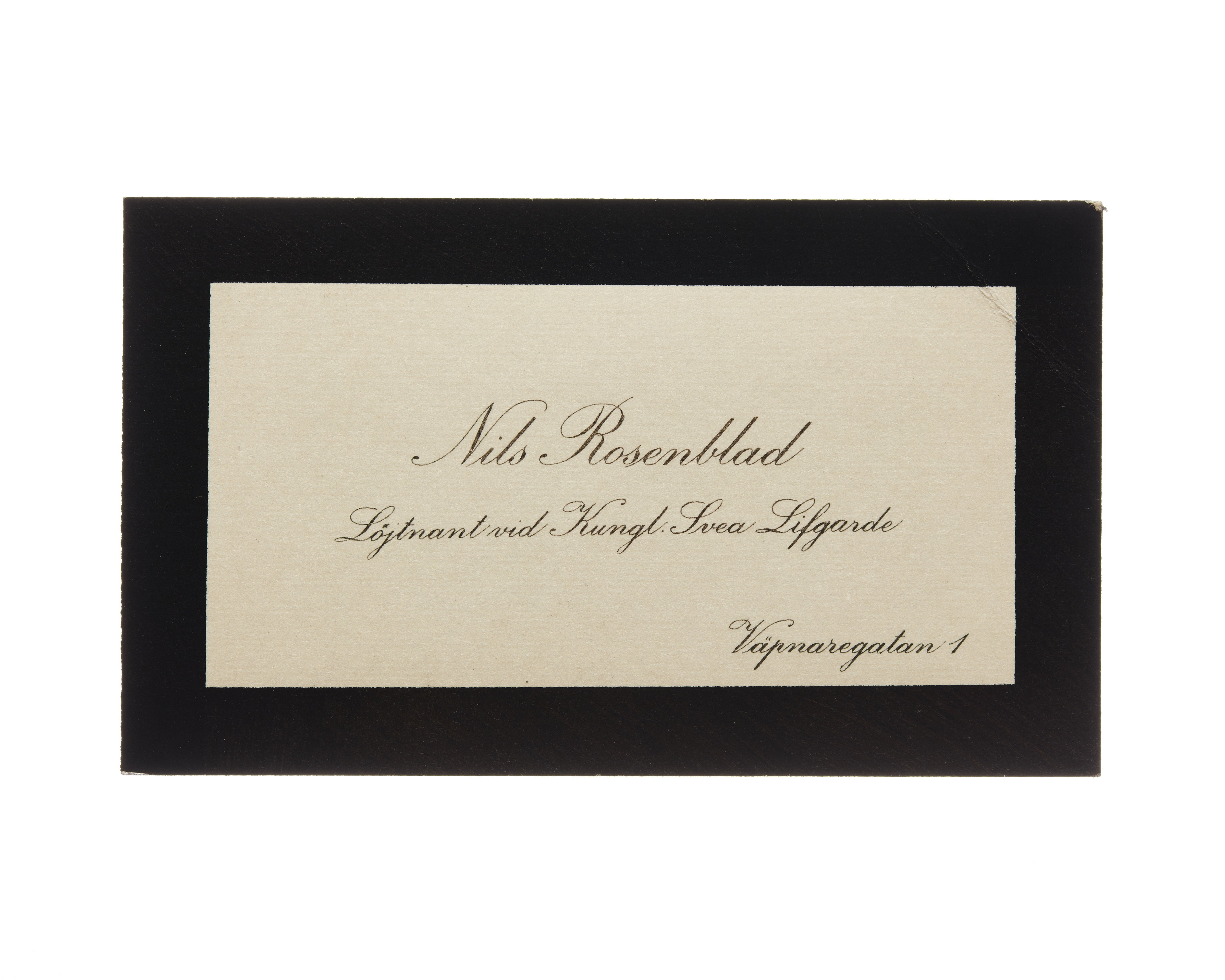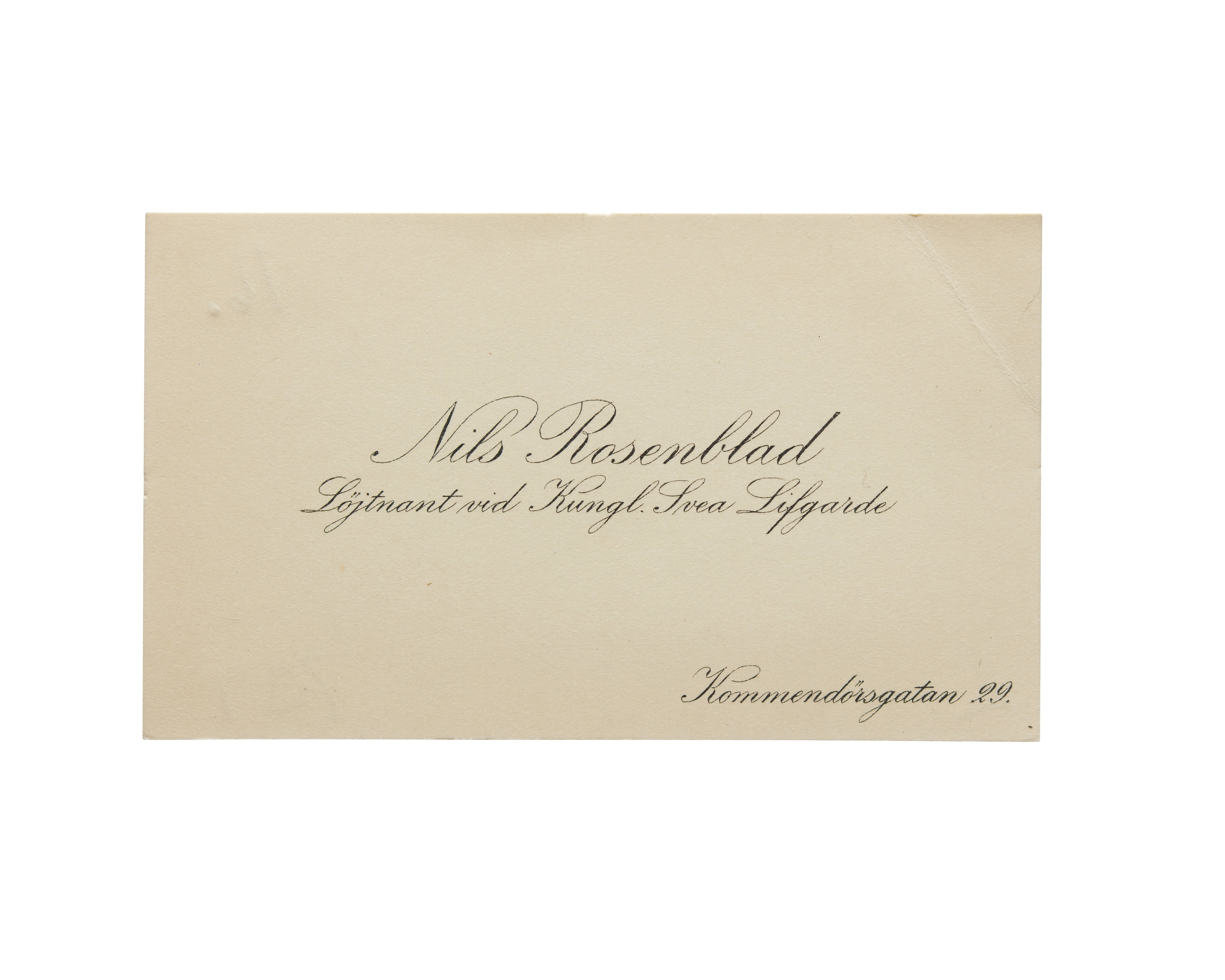 Visitkort från Nils Rosenblad, Löjtnant vid Kungl. Svea Livgarde.