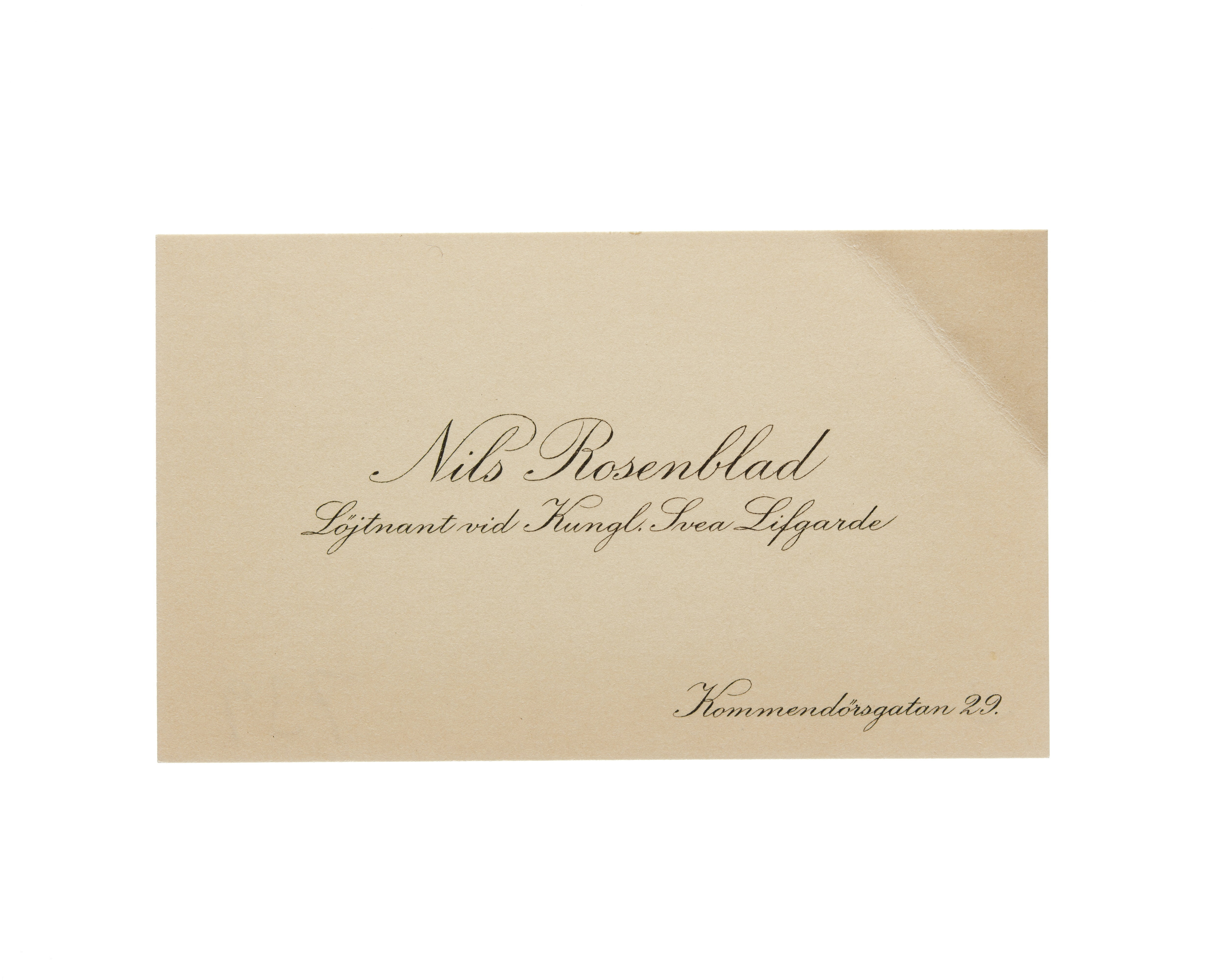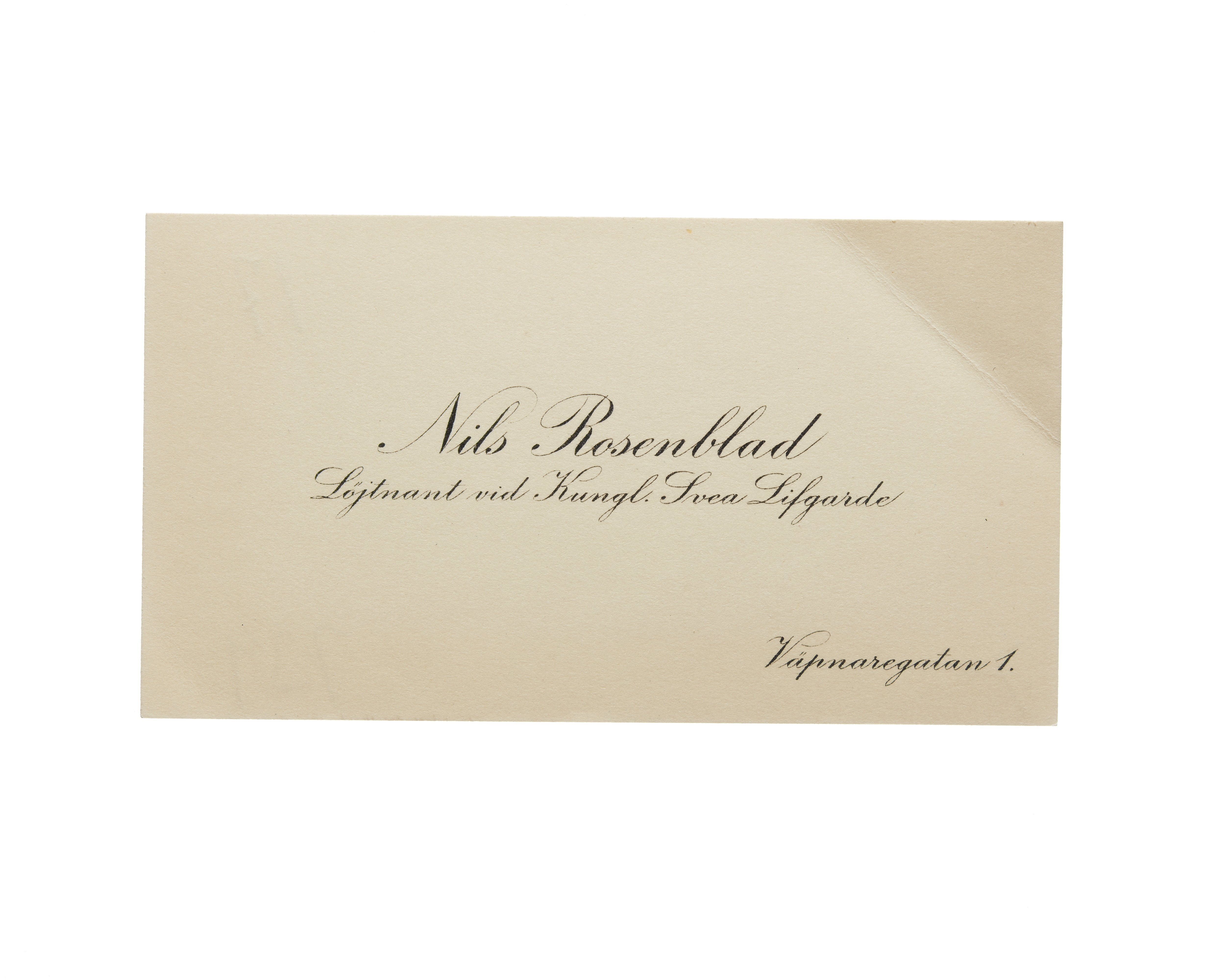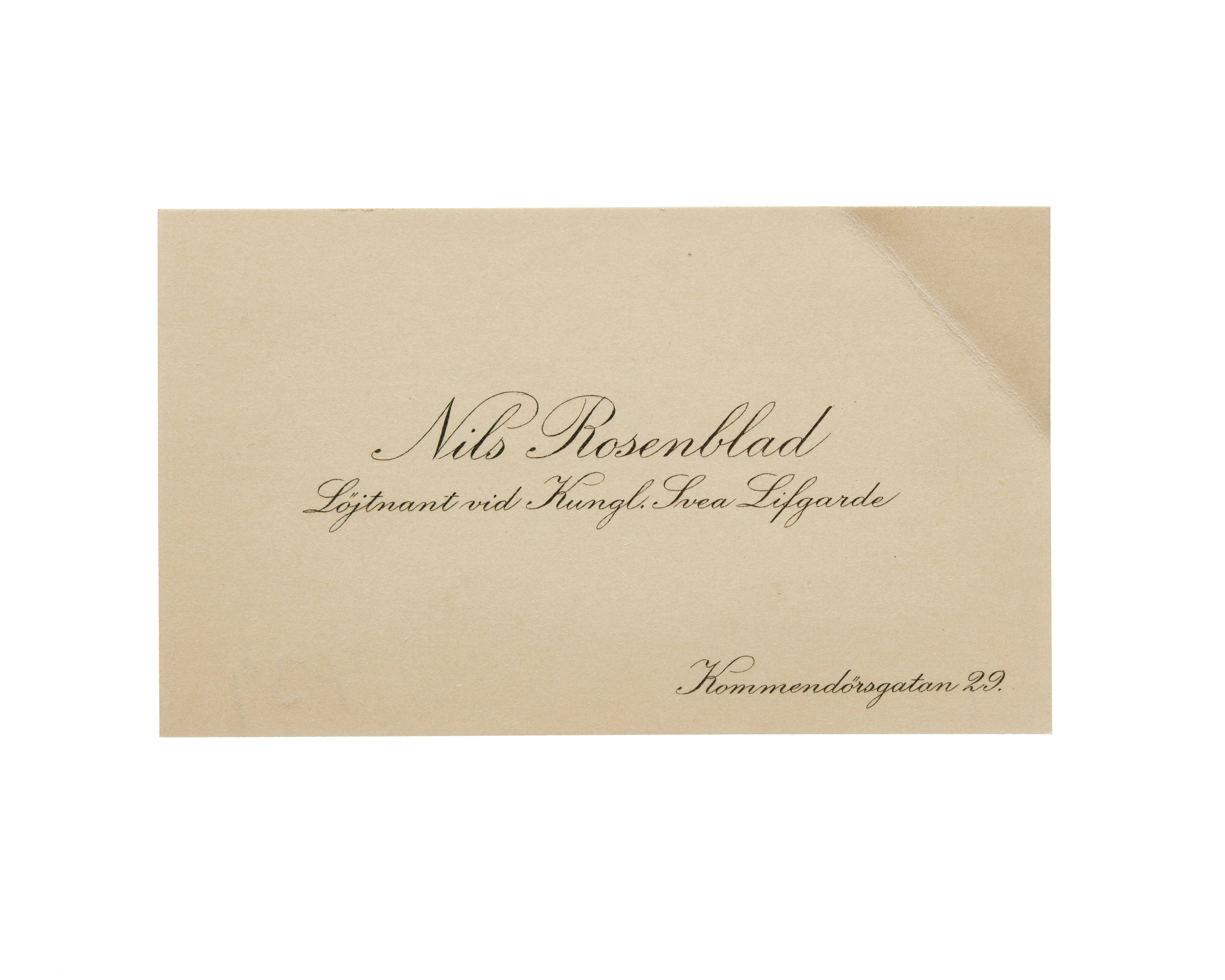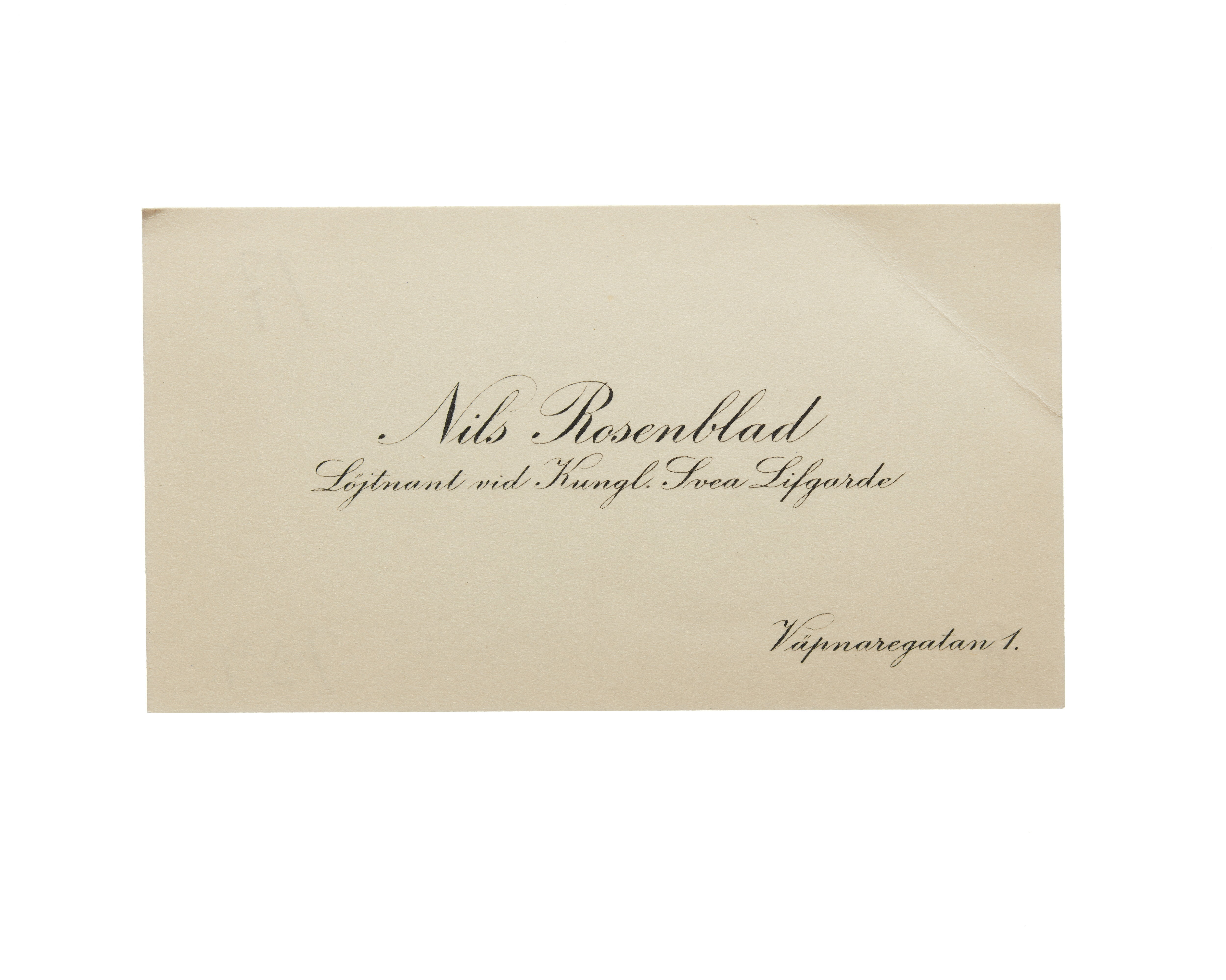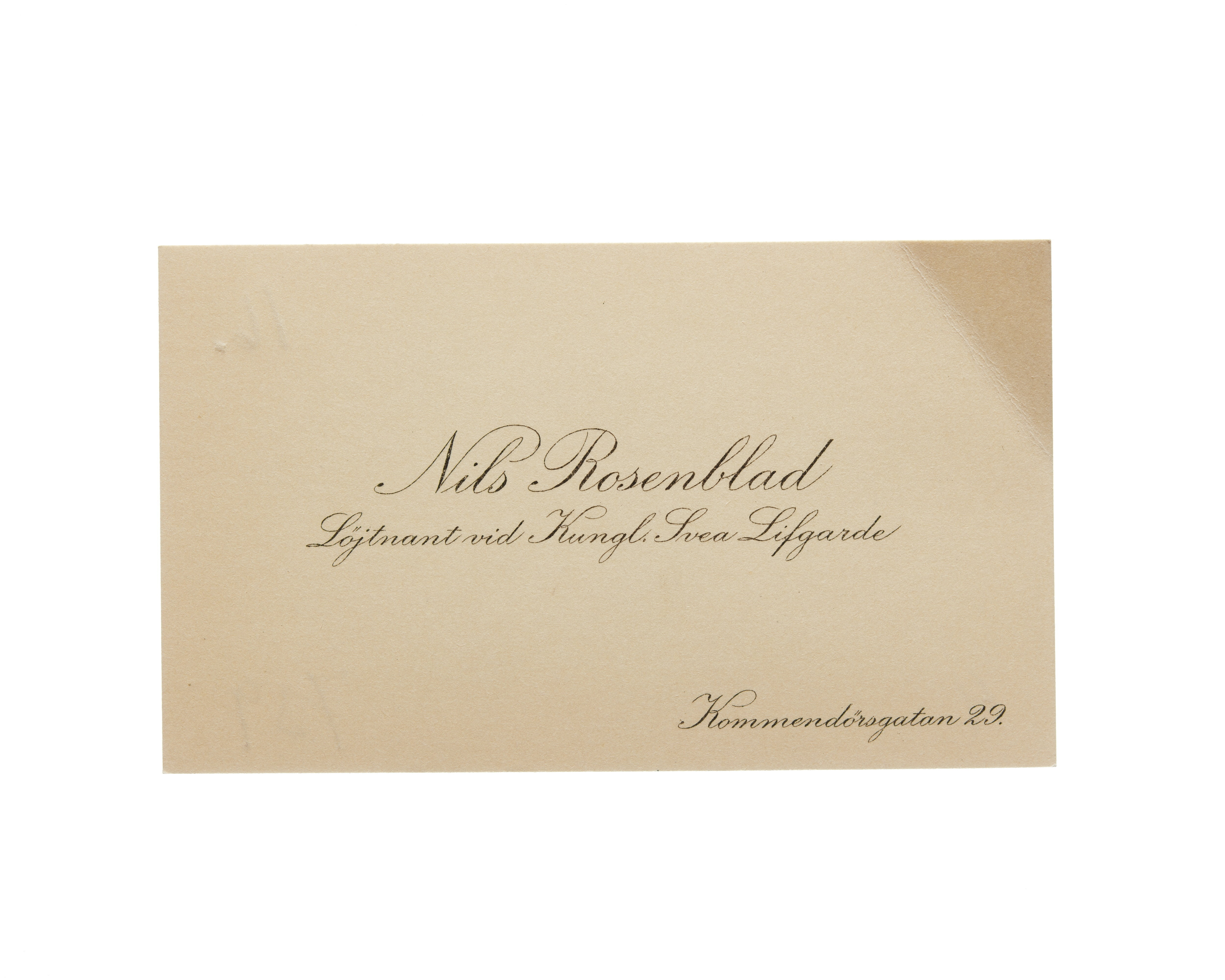 Visitkort från Nils Rosenblad, Löjtnant vid Kungl. Svea Livgarde.